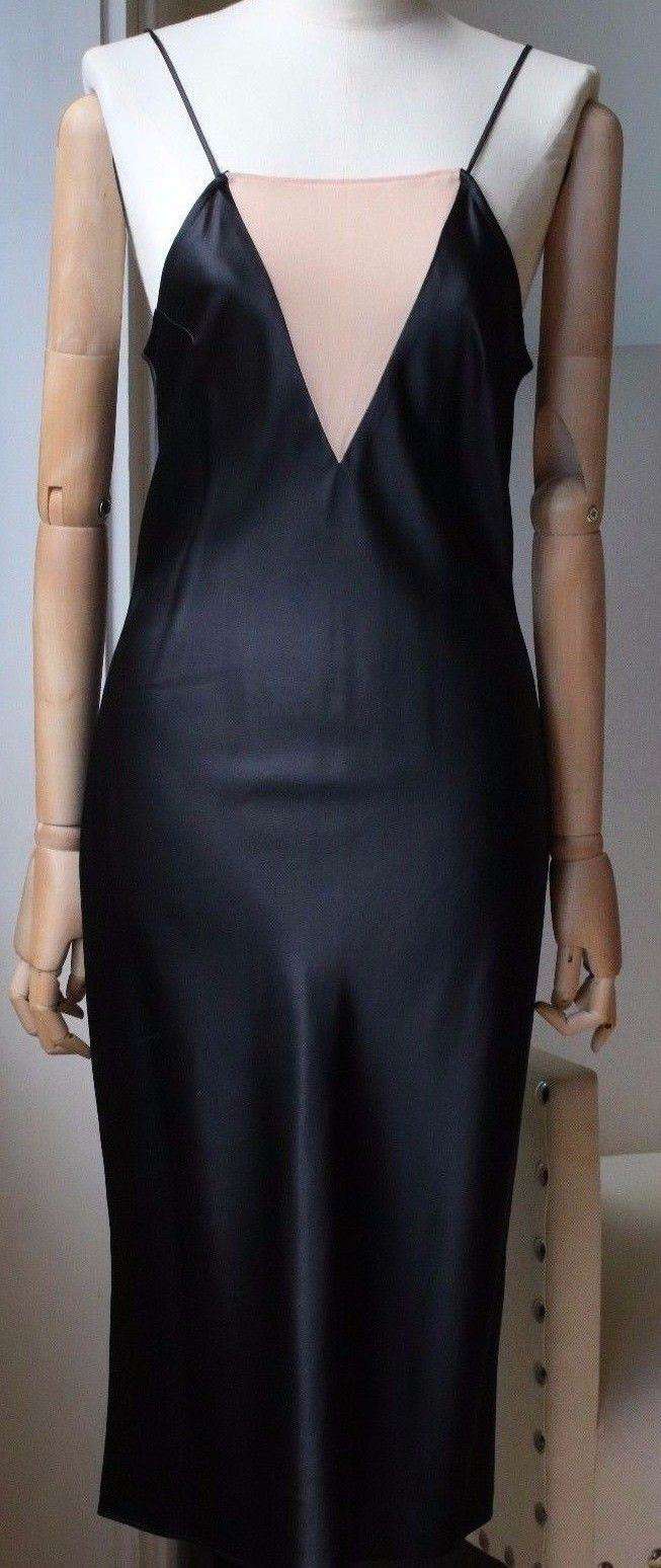 Fleur Du Mal Dress. 100% Silk bias slip dress with plunging neckline accentuated by barely visible nude sheer tulle. Hits just below the knee and has adjustable straps for a perfect fit. Size: Small (UK 8, FR 36, US 4, IT 40) RRP: £360 Ref: SH