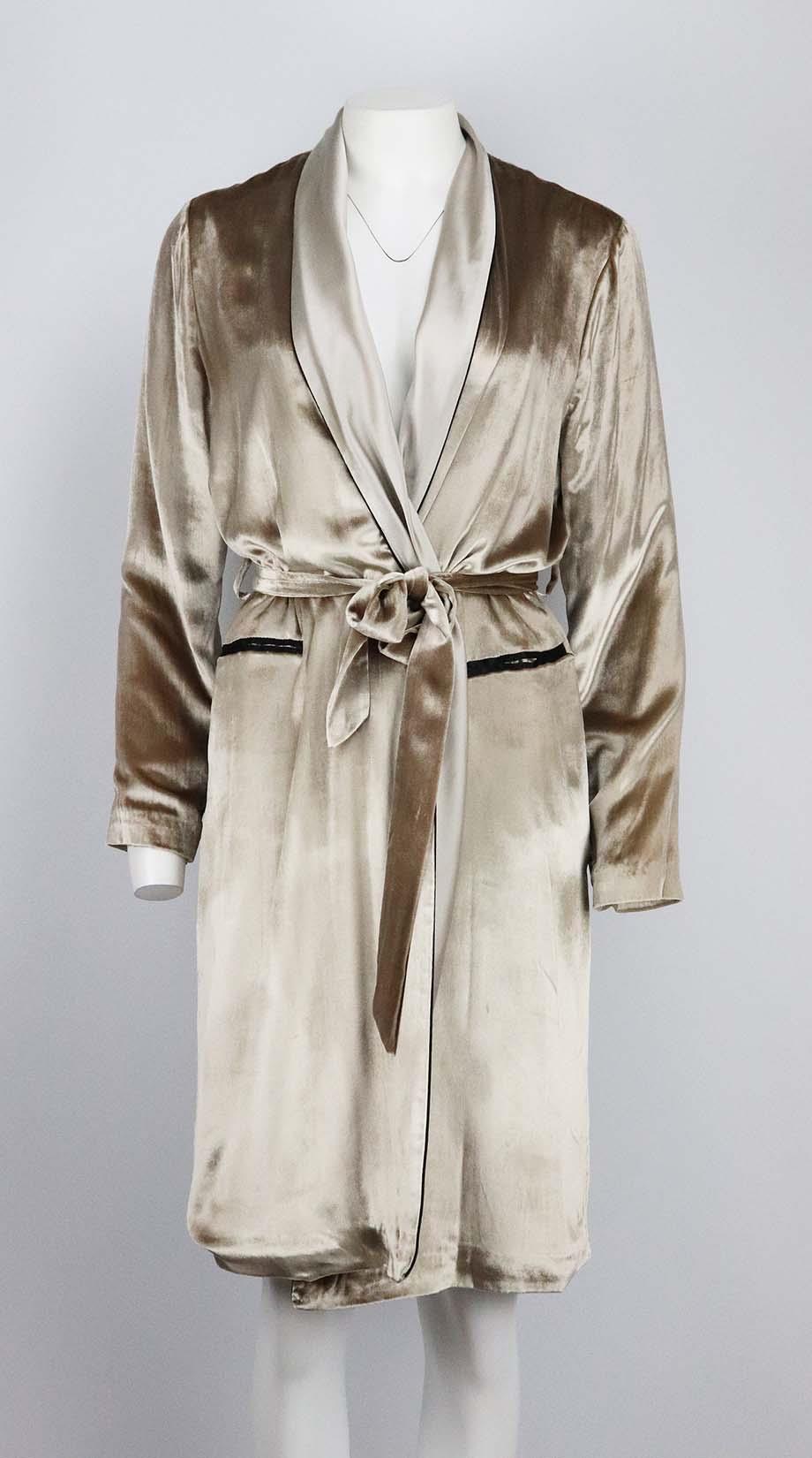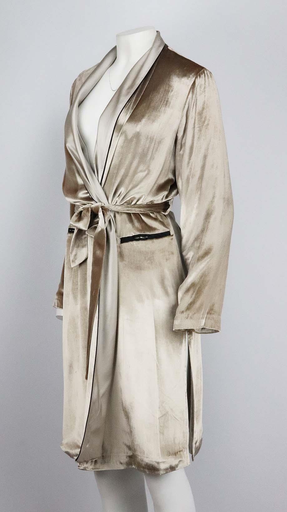 - This robe by Fleur du Mal is cut from plush velvet with a matching tie belt, it has a silk-charmeuse shawl collar and contrasting black piped trims. Mushroom velvet, stone and black silk-charmeuse.