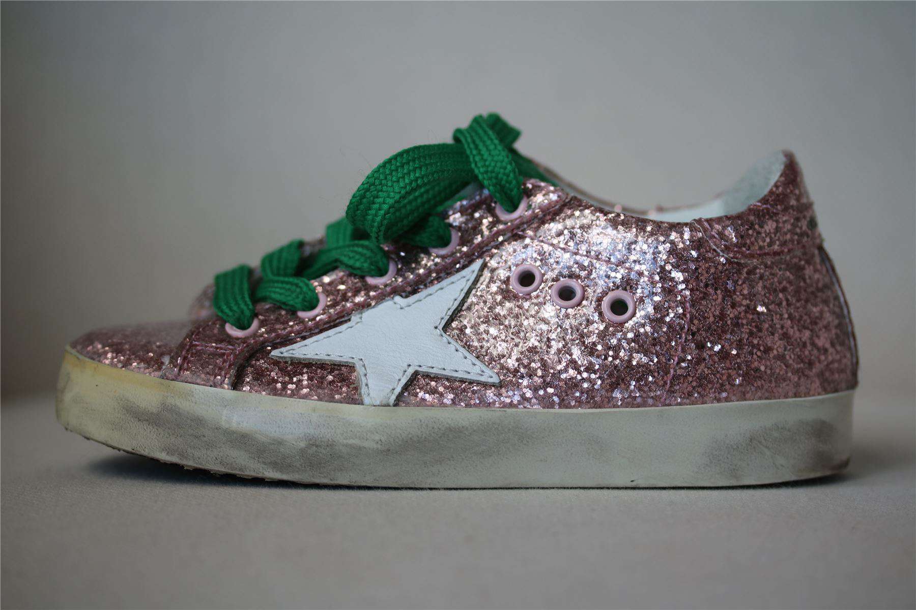 GOLDEN GOOSE DELUXE BRAND SUPERSTAR KIDS PINK GLITTER TRAINERS EU 27 UK 9