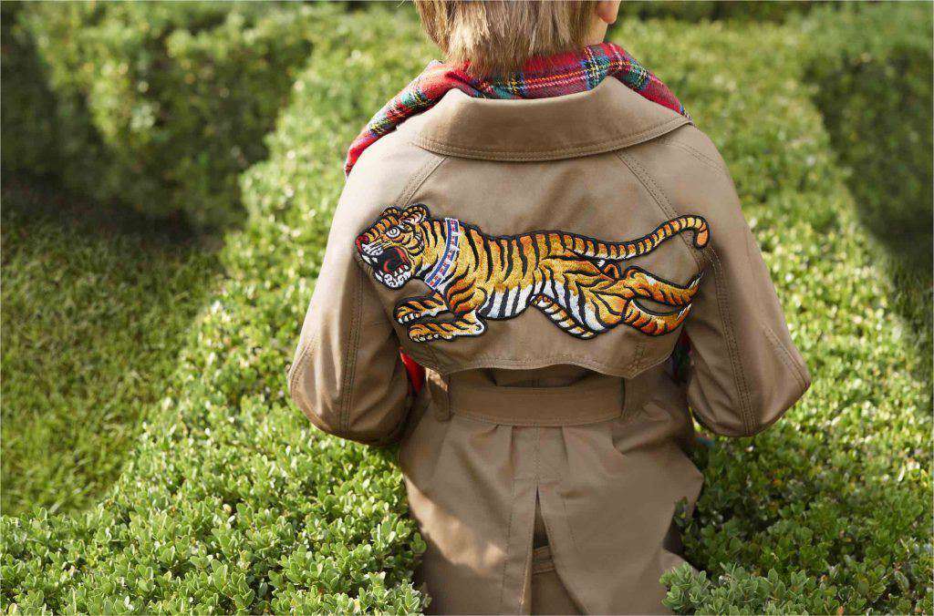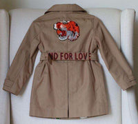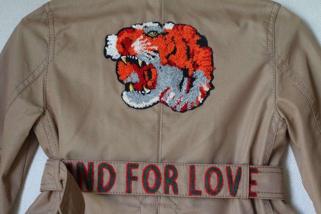 Gucci Jacket . Exquisite trench coat embellished with and eh designer's signature 'Blind for Love' motif and a tiger on the back. Size - 24 months Ref: SB20