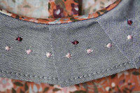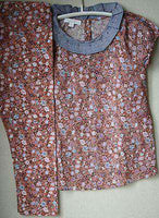 Gorgeous lightweight cotton floral blouse from Gucci featuring an embroidered chambray flutter collar. Coordinating cotton jersey leggings.