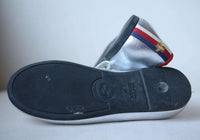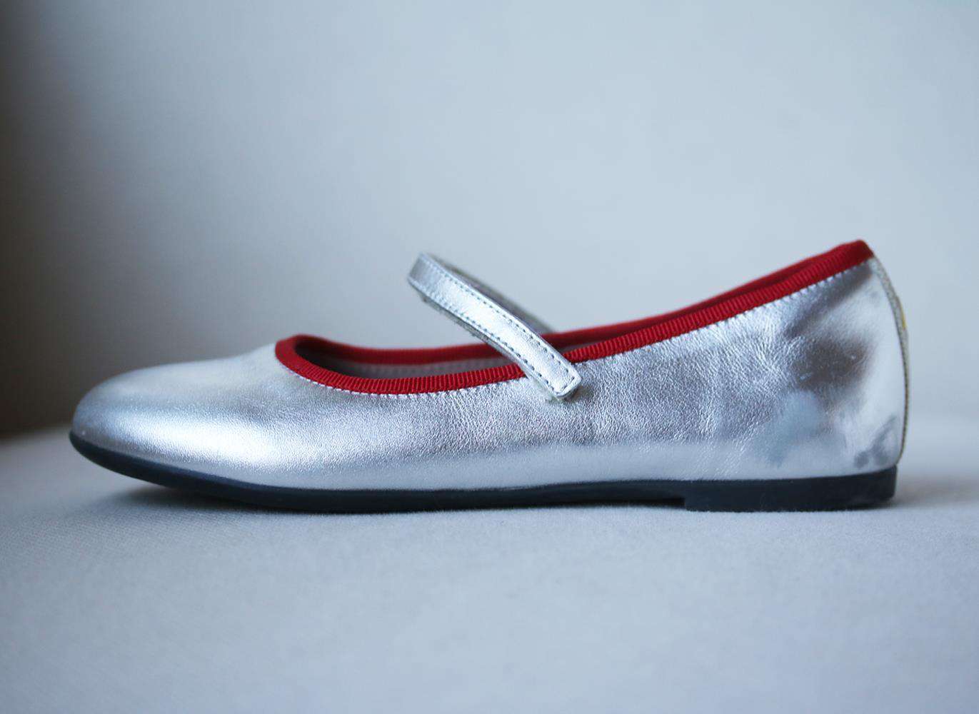 - Gucci girls silver leather shoes, featuring a velcro front strap.