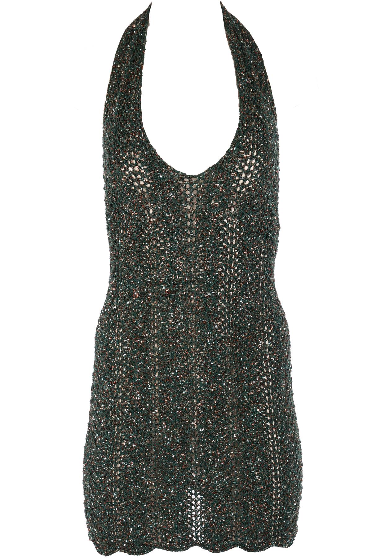 SAINT LAURENT GREEN KNIT MINI DRESS MEDIUM
