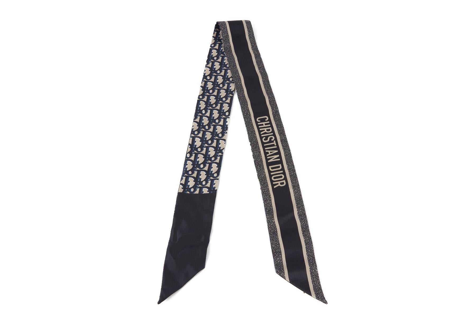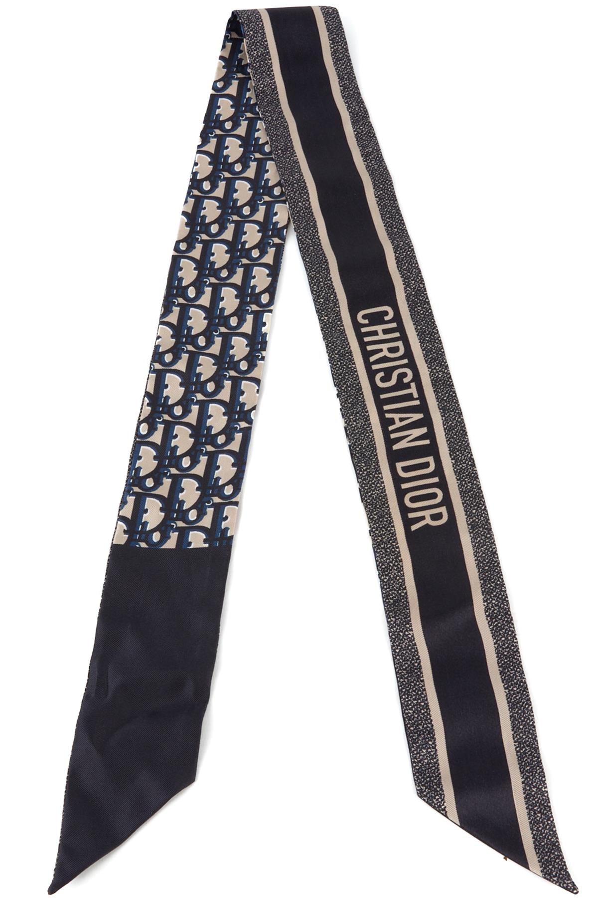 CHRISTIAN DIOR NAVY OBLIQUE SILK SCARF