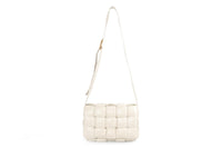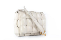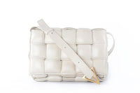 BOTTEGA VENETA ECRU CASSETTE INTRECCIATO LEATHER SHOULDER BAG