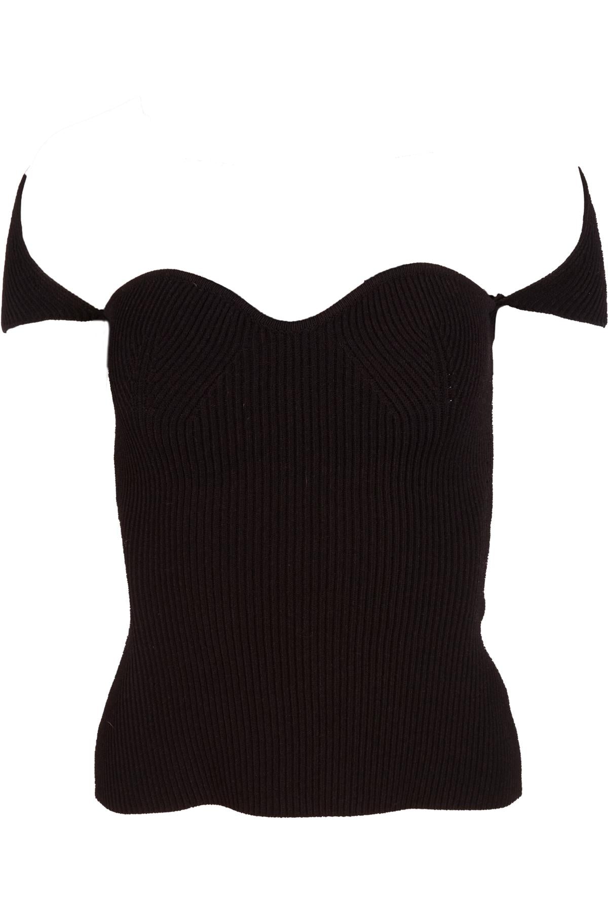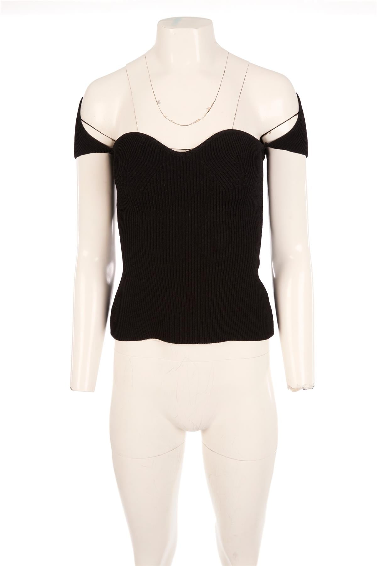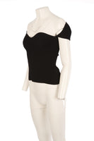 Khaite Black Knit Top. Black. Short Sleeve. Sweetheart. Pull on. 83% Viscose, 17% Polyester. Small (UK 8, US 4, FR 36, IT 40). Bust: 27 in. Waist: 22 in. Hips: 27 in. Length: 20.2 in.