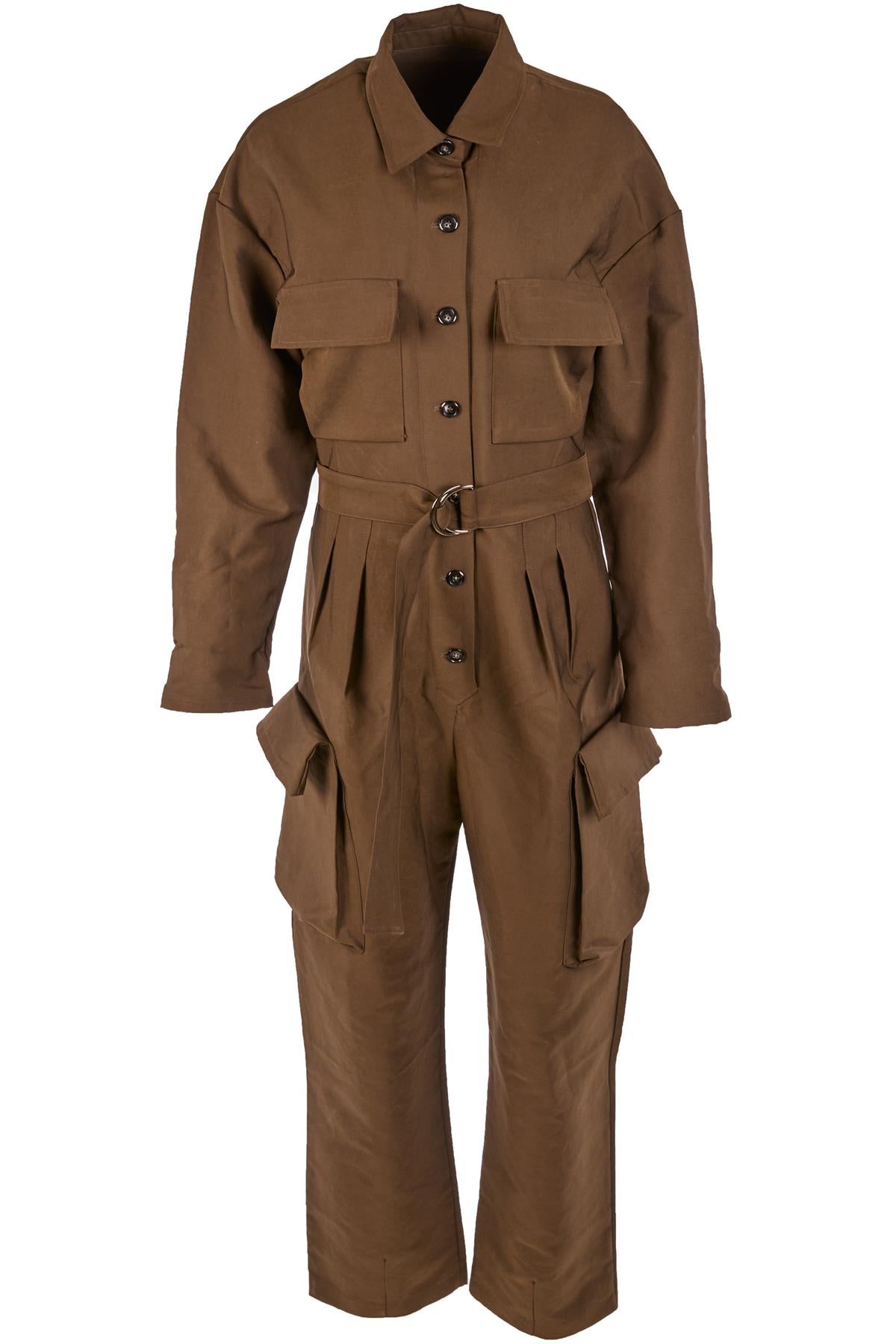 THE FRANKIE SHOP KHAKI COTTON JUMPSUIT SMALL