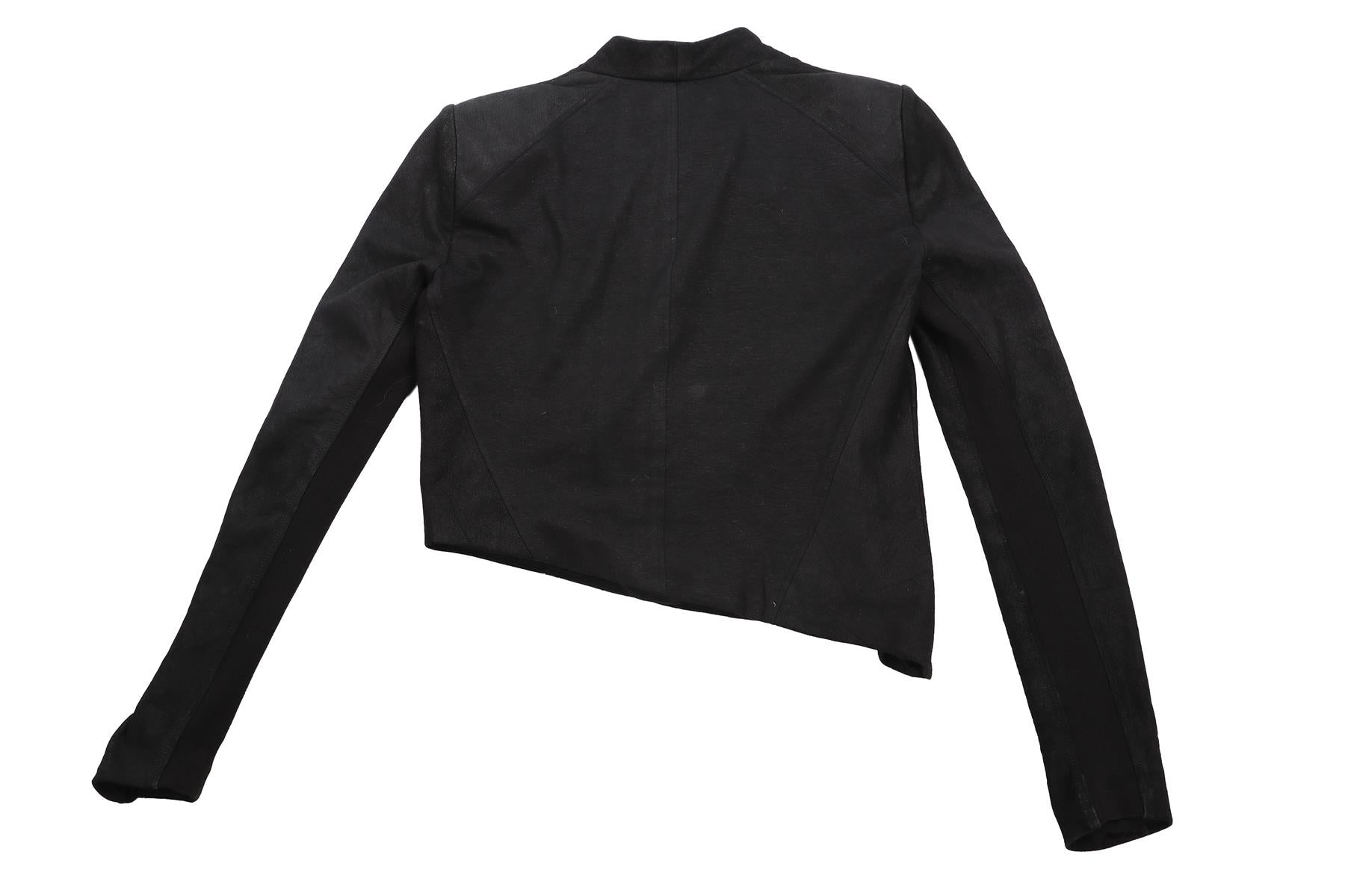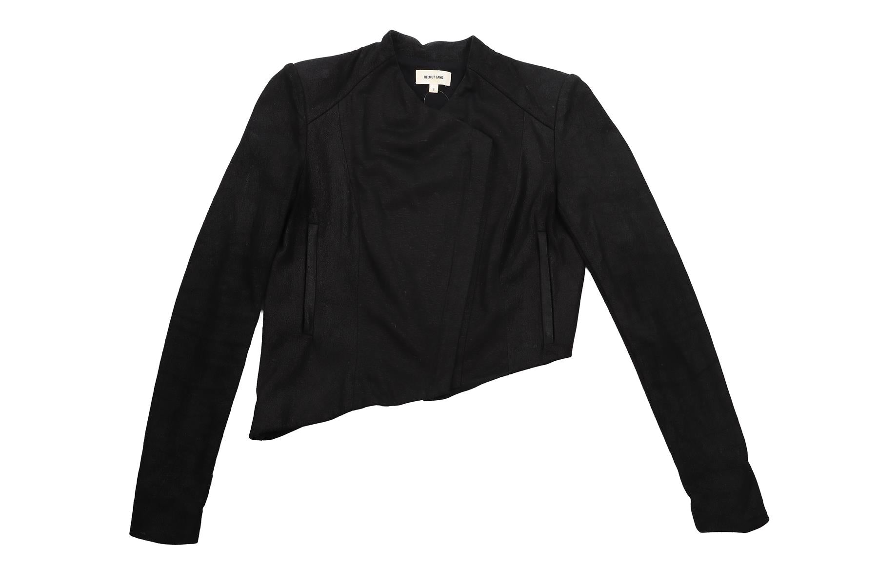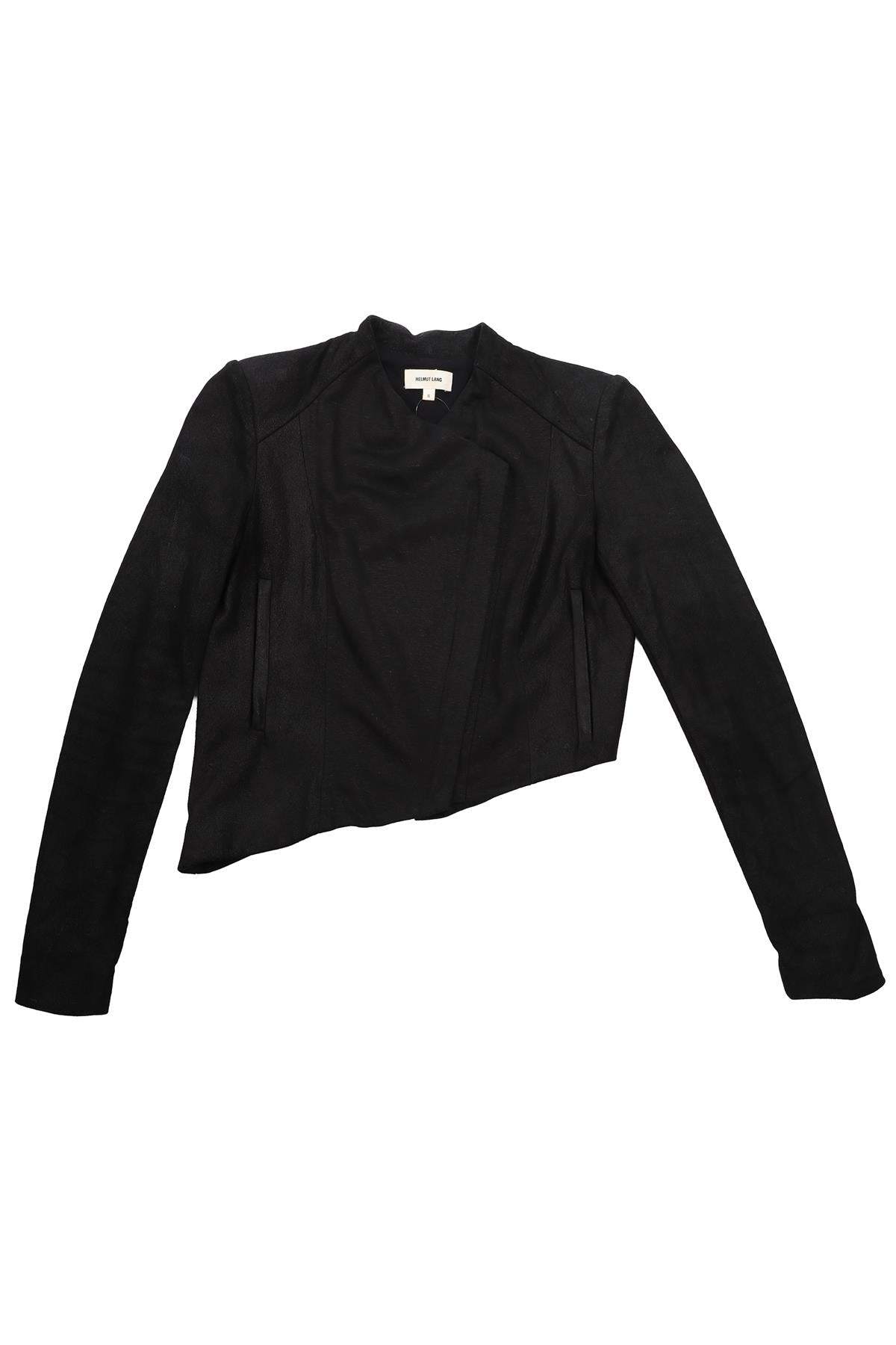 Helmut Lang Black Linen Jacket. Black. 3/4 Sleeve. Asymmetric. Zip fastening - Front. 60% Linen, 40% Cotton, 100% Viscose, 100% Goat leather. Small (UK 8, US 4, FR 36, IT 40). Bust: 38 in. Waist: 34 in. Hips: 36 in. Length: 19 in.