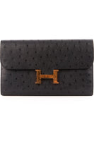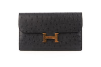 HERMÈS NAVY 2018 CONSTANCE LONG OSTRICH WALLET IN BLEU INDIGO