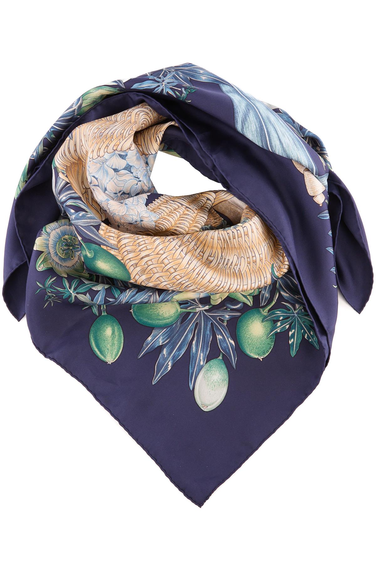 HERMÈS NAVY PASSIFLORES SILK SCARF