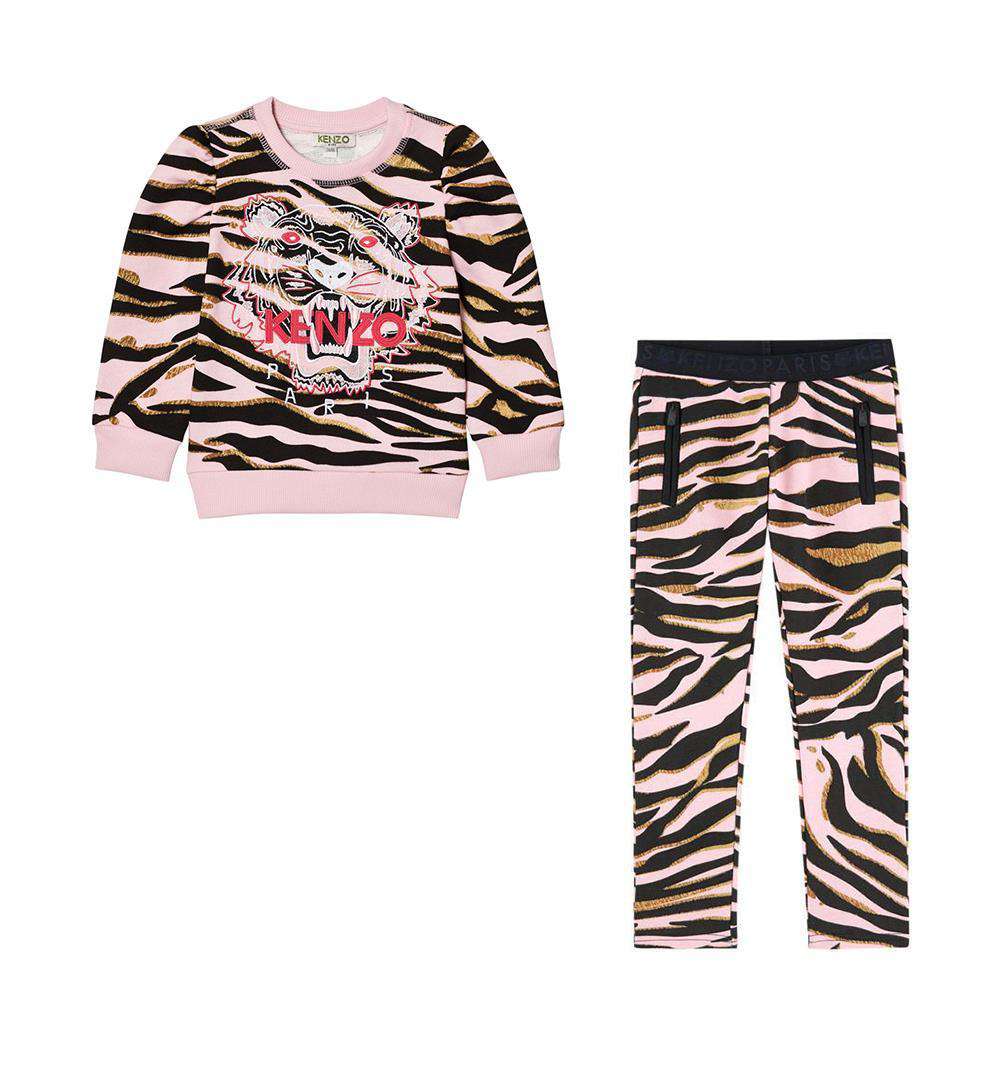 • A soft and stretchy tracksuit for girls by Kenzo Kids, with a colourful zebra print.