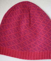 Soft, stretchy knitted fuchsia pink hat by Fendi made from a wool blend with the designer's signature zucca pattern woven in.