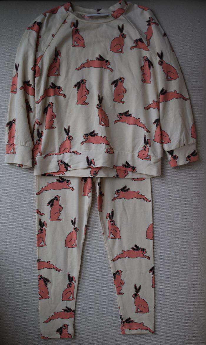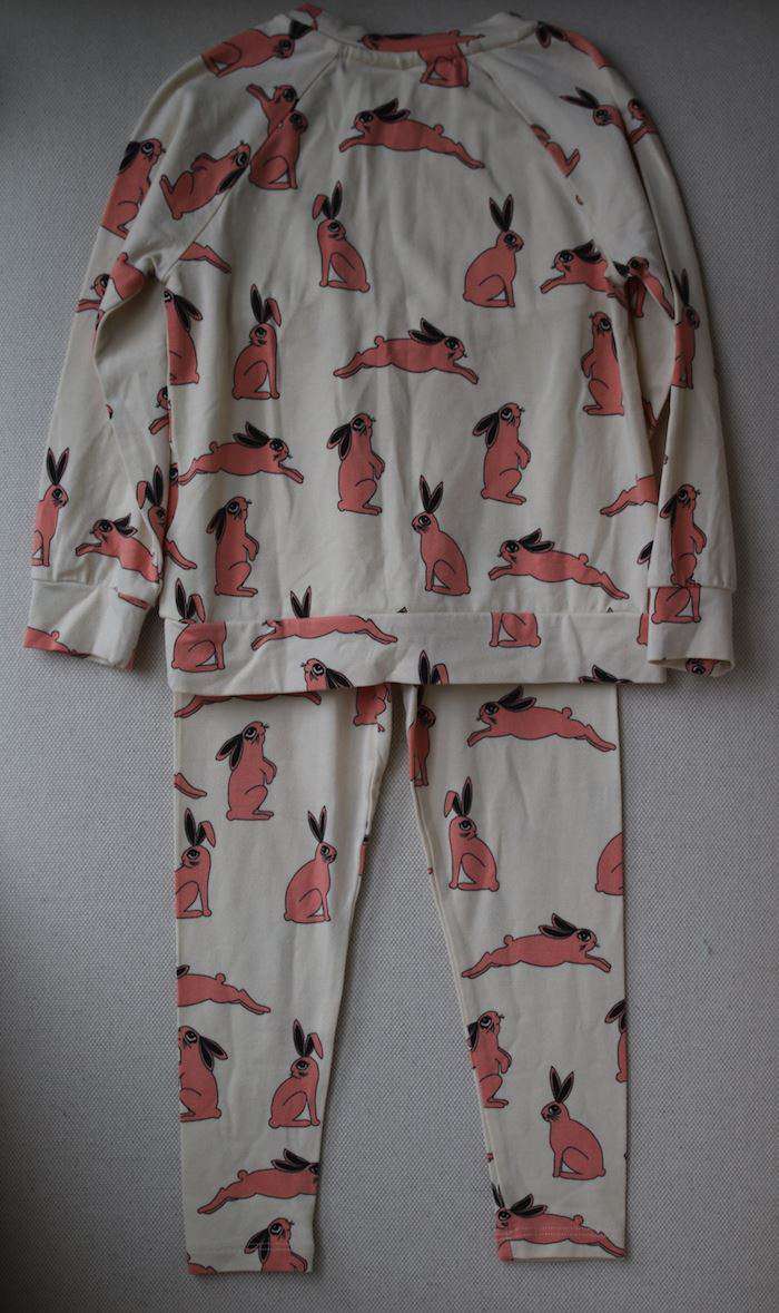 Made by Mini Rodini in ivory soft organic cotton, which is kind on the skin and the environment, these top and leggings are a comfortable choice for both boys and girls. They have a quirky pink rabbit print, ribbed trims and a drawstring waistband.