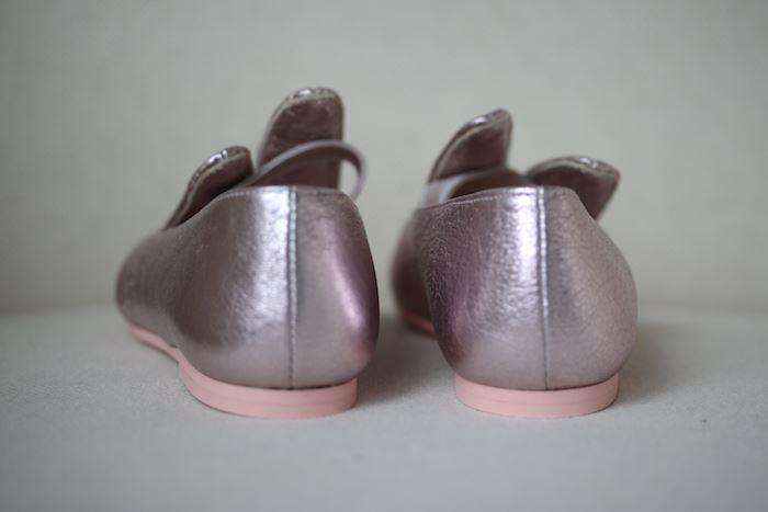 Made in shiny pink leather, these ballerina shoes have Minna Parikka Mini's signature bunny ears. There is an elastic strap hidden behind the ears to help keep the shoes securely in place.