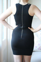 A sophisticated bodycon dress with lace upper and insets. Featuring a round neck, mid-length and silver-toned zip closure at the back.