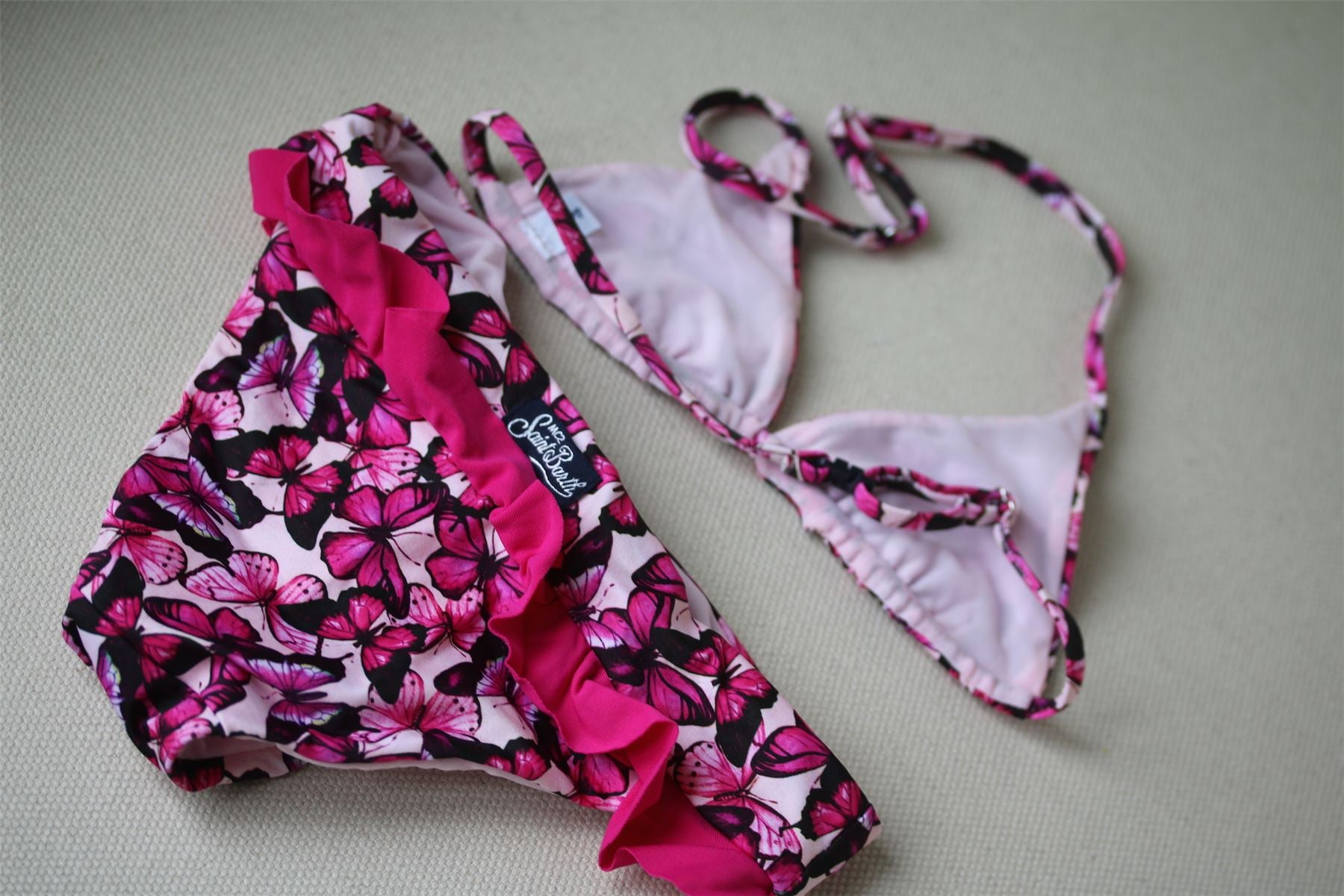 - The super sweet pink butterfly print bikini by MC2 St Barth is sure to make a top-drawer favourite throughout the warmer coming months.