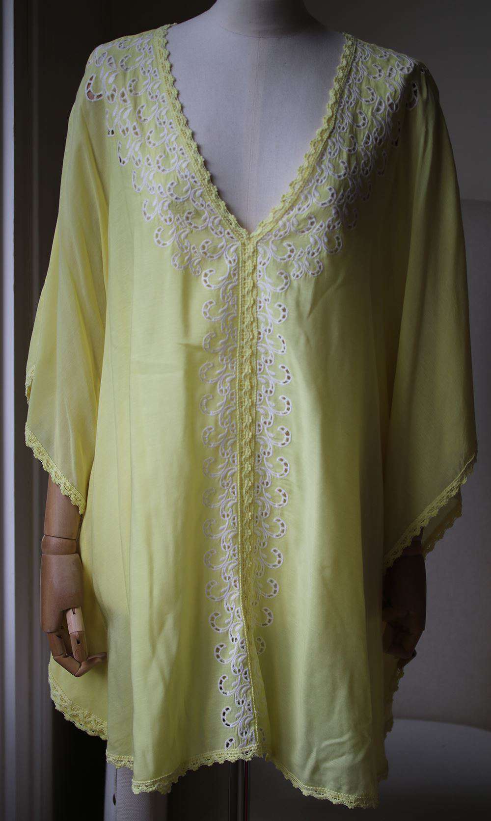 Eyelet paisley and lace-trimmed edges bring sweet detail to this Melissa Odabash cover-up caftan. Sheer. Fabric: Voile. 100% rayon.
