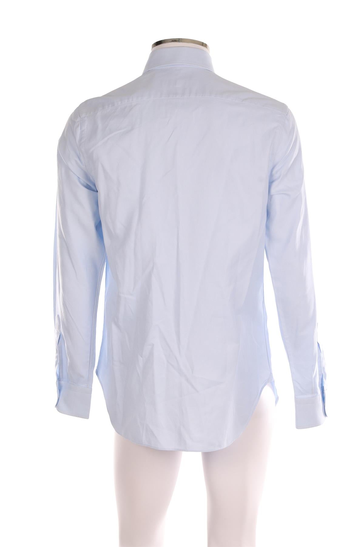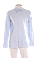 Giuliva Blue Men'S Cotton Shirt. Blue. Long Sleeve. V-Neck. Button fastening - Front. 100% Cotton. IT 48 (UK/US 32, FR 40). Bust: 40 in. Waist: 38 in. Hips: 42 in. Length: 31 in.