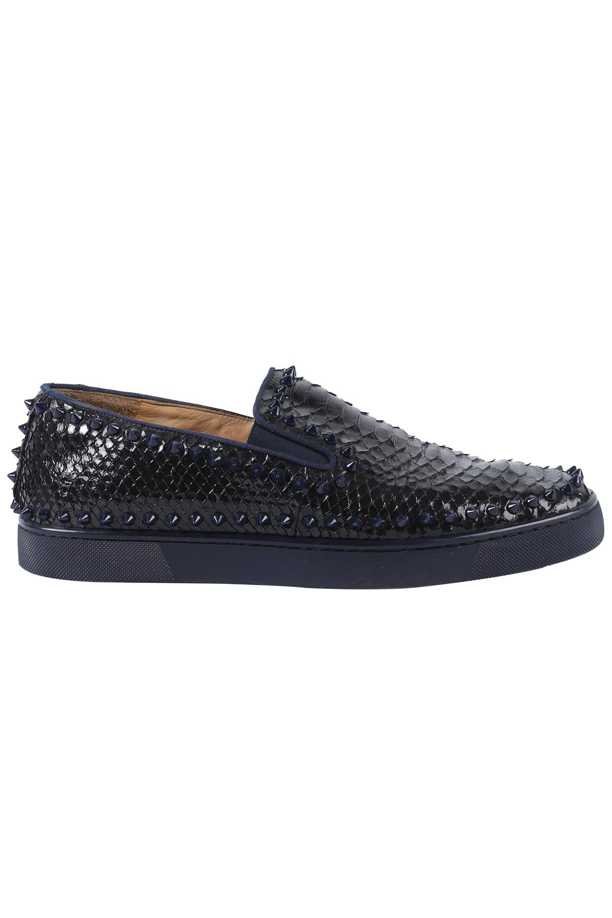 - Christian Louboutin Navy Men's Spiked Python Sneakers.