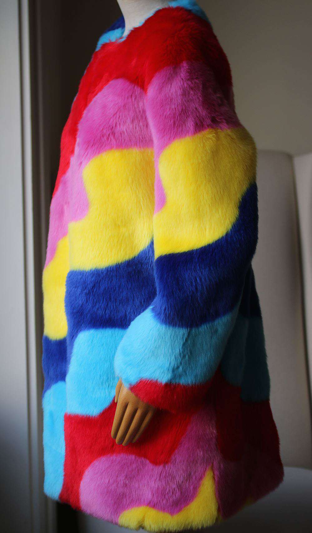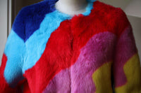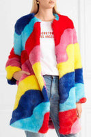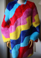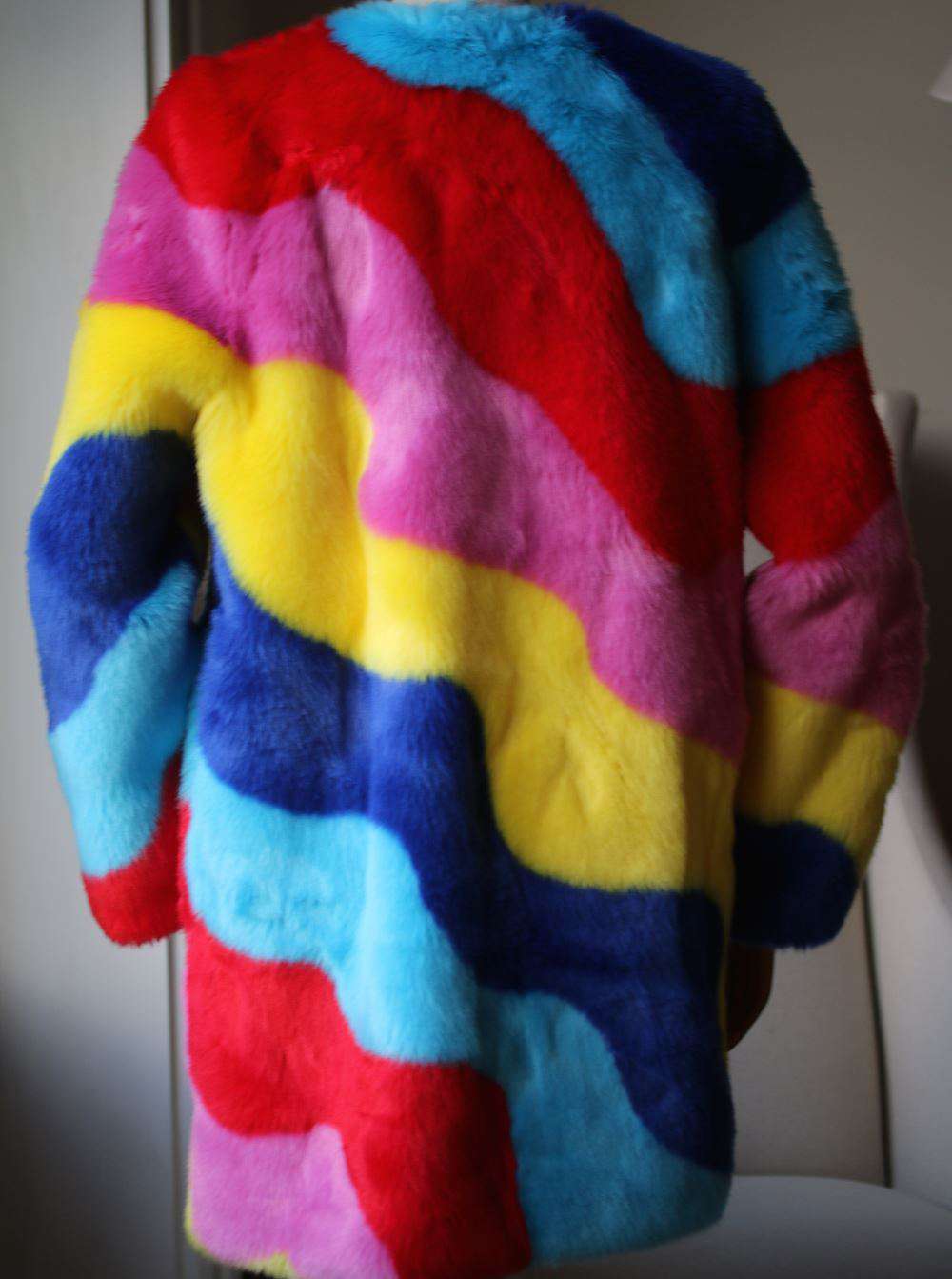 MIRA MIKATI RAINBOW WAVE STRIPED FAUX FUR COAT US 6 UK 10