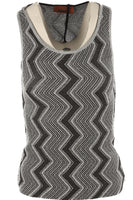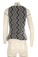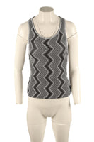 Missoni Silver Crochet Top. Black and silver. Sleeveless. Crewneck. Slips on. 66% Viscose, 34% Metallised fibre. IT 38 (UK 6, US 2, FR 34). Bust: 28 in. Waist: 26 in. Hips: 32 in. Length: 23 in.