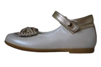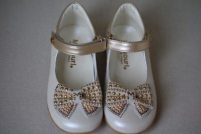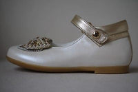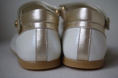 - Girls ivory and gold leather shoes by Missouri.
