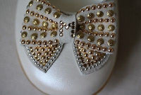 - The toes are decorated with silver and gold bead embellished bows.