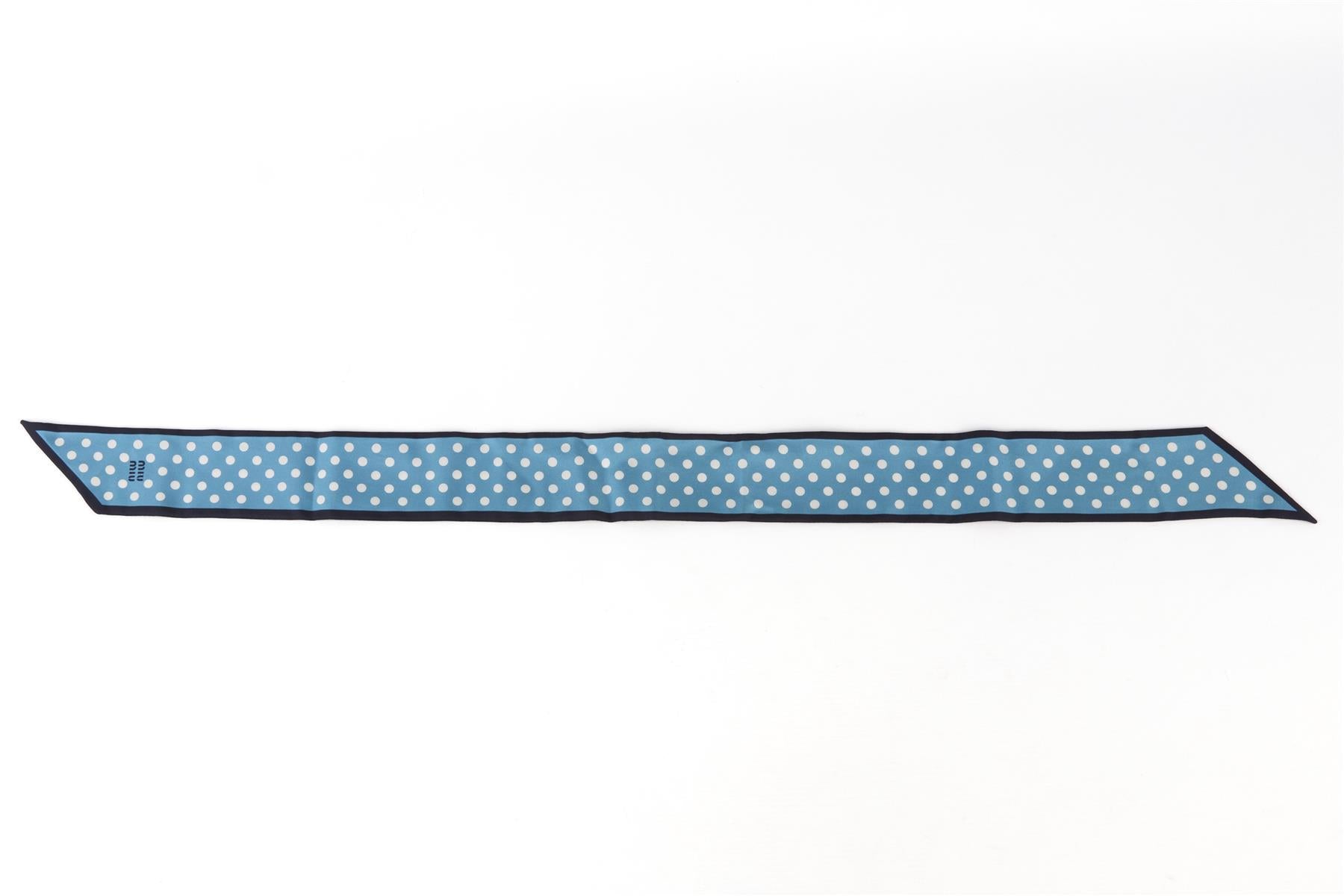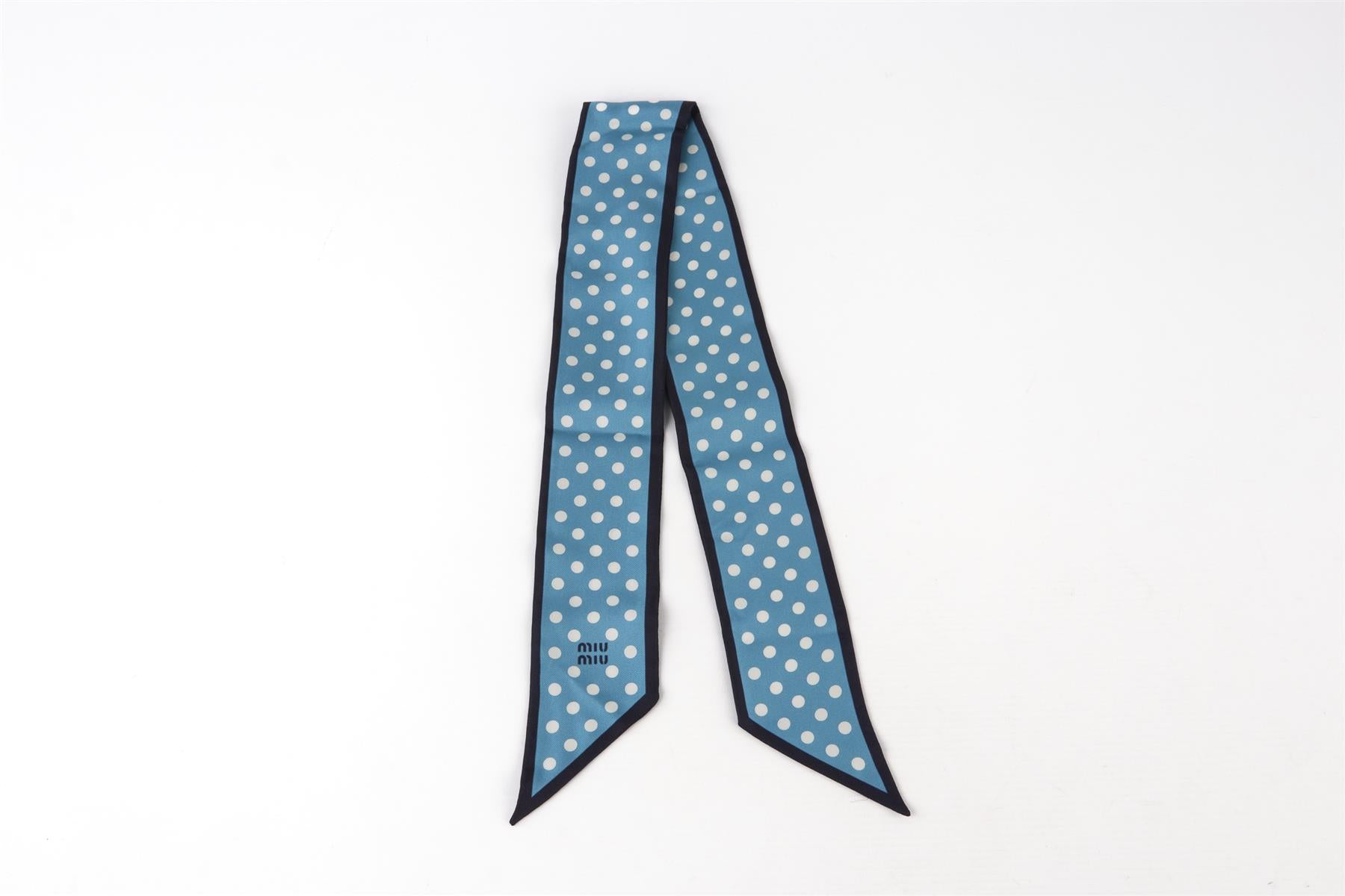 Miu Miu Blue Silk Scarf. Blue. Comes with - box. 100% Silk. Height: 2.5 in. Width: 33 in.