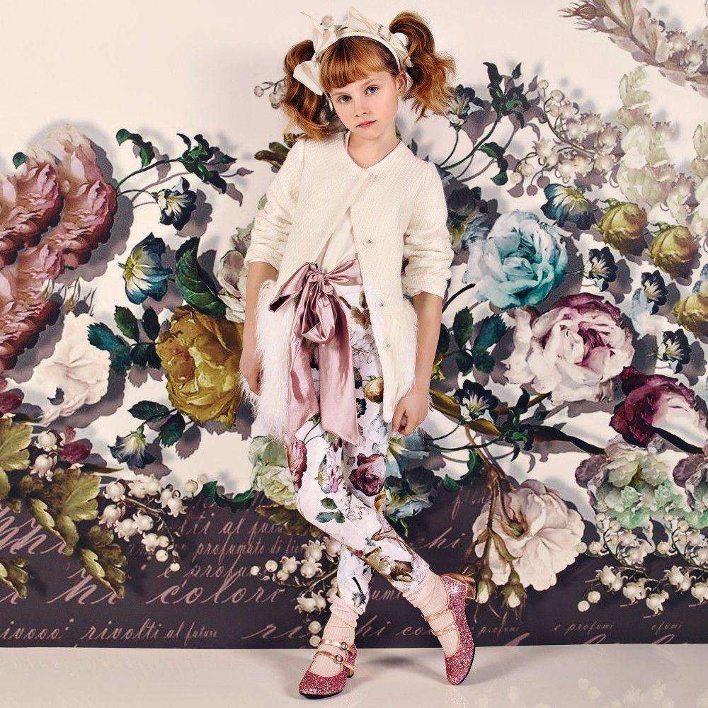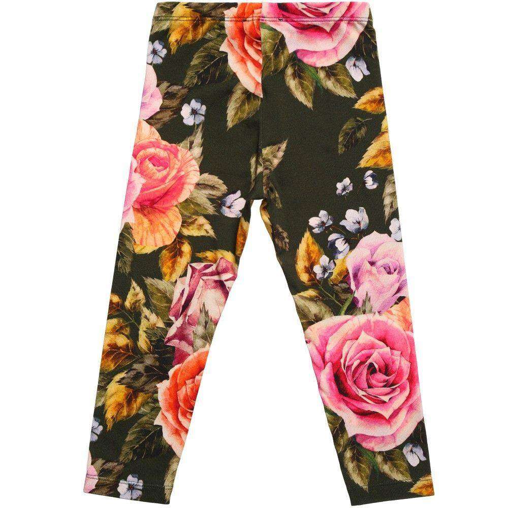 Monnalisa leggings . Monnalisa Bimba girls dark green leggings made from soft cotton jersey with all over bright coloured rose print and a comfortable elasticated waist. Size - 2 years RRP £48 Ref: T5
