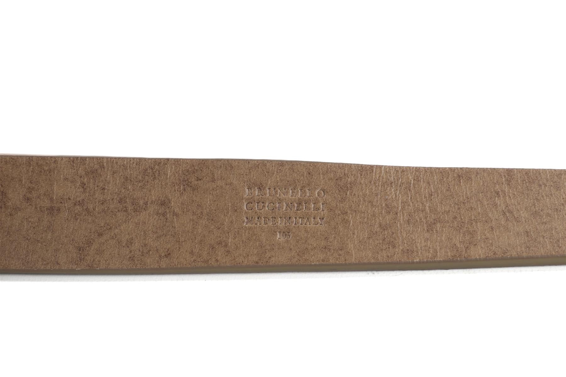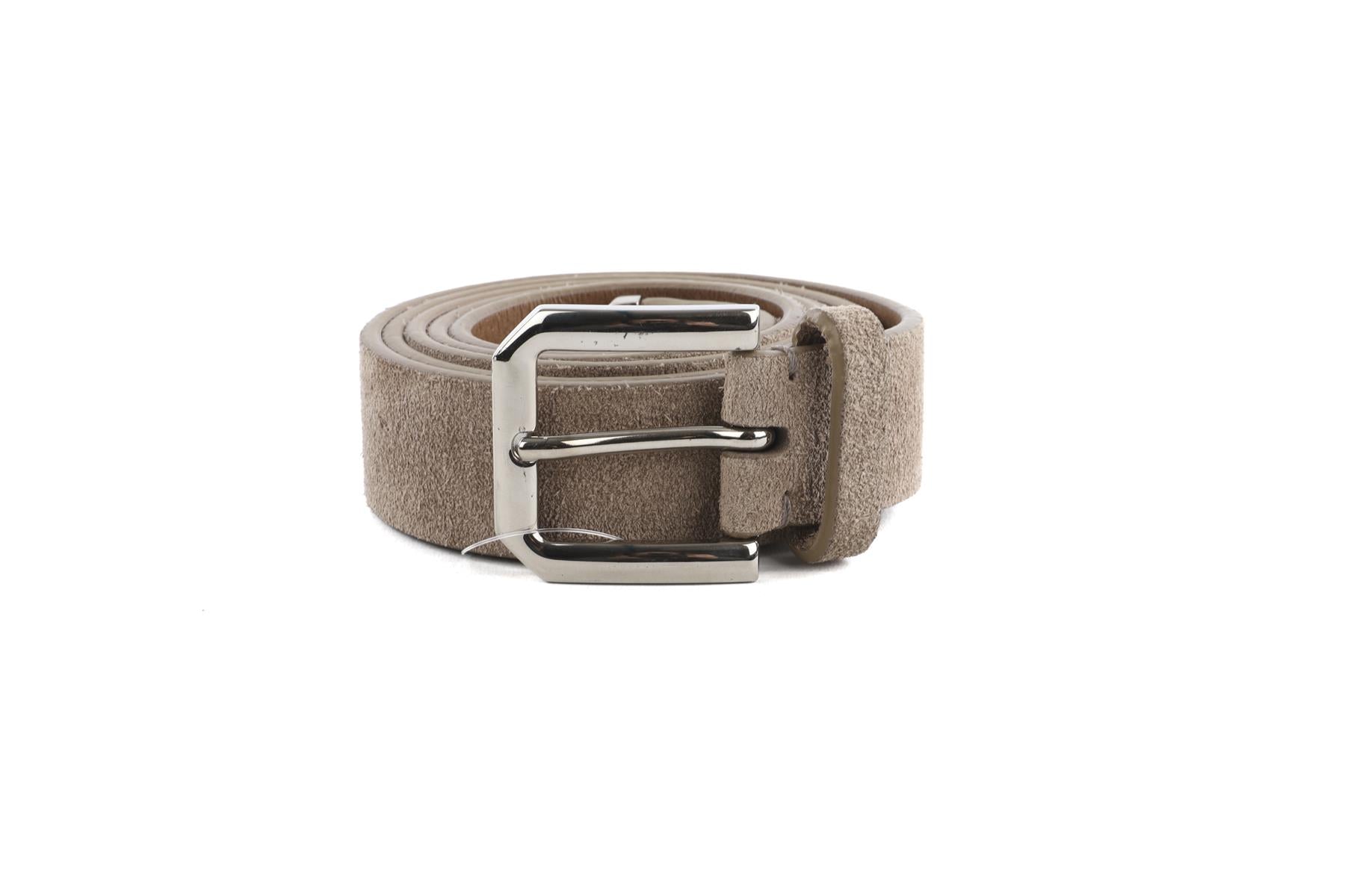 Brunello Cucinelli Taupe Men'S Suede Belt. Taupe. Buckle fastening - Front. 105cm. Length: 35-41 in. Width: 1.25 in.