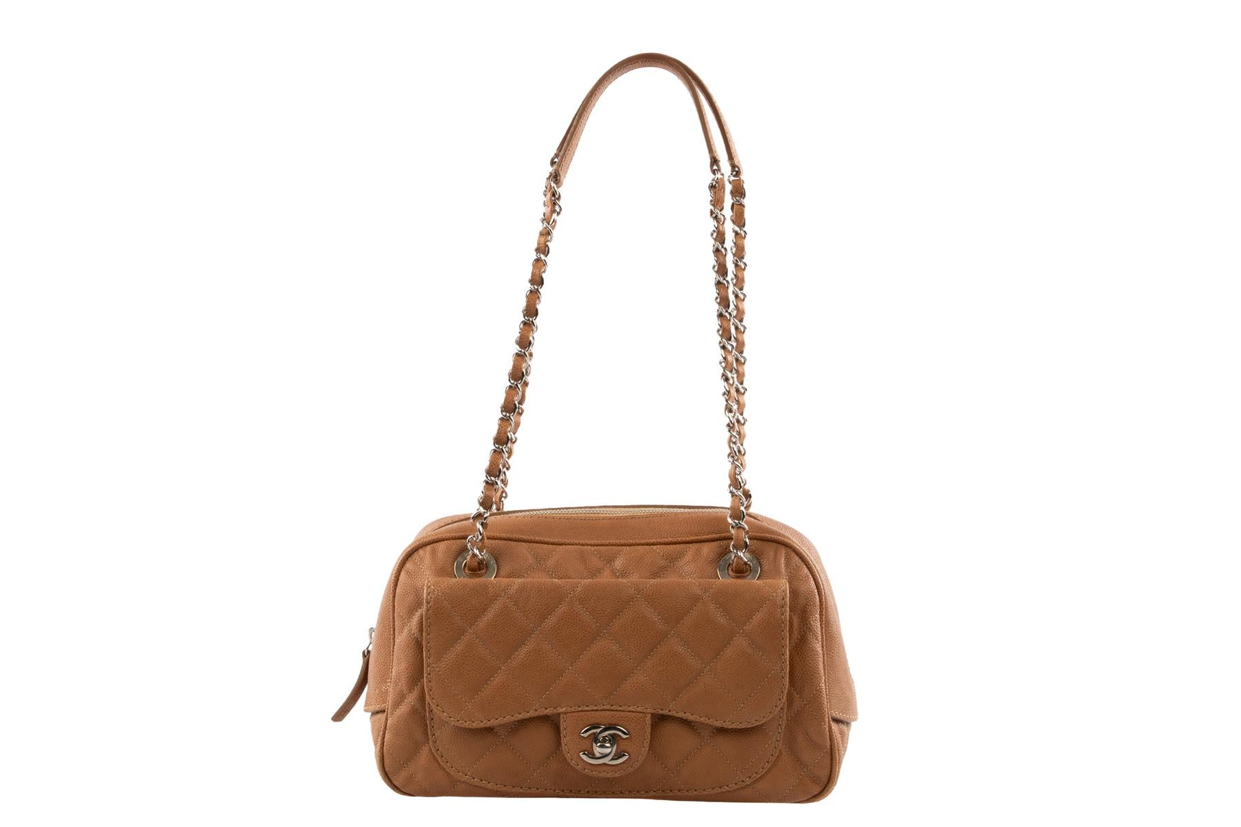 CHANEL TAN 2012-2013 CAVIAR LEATHER SHOULDER BAG