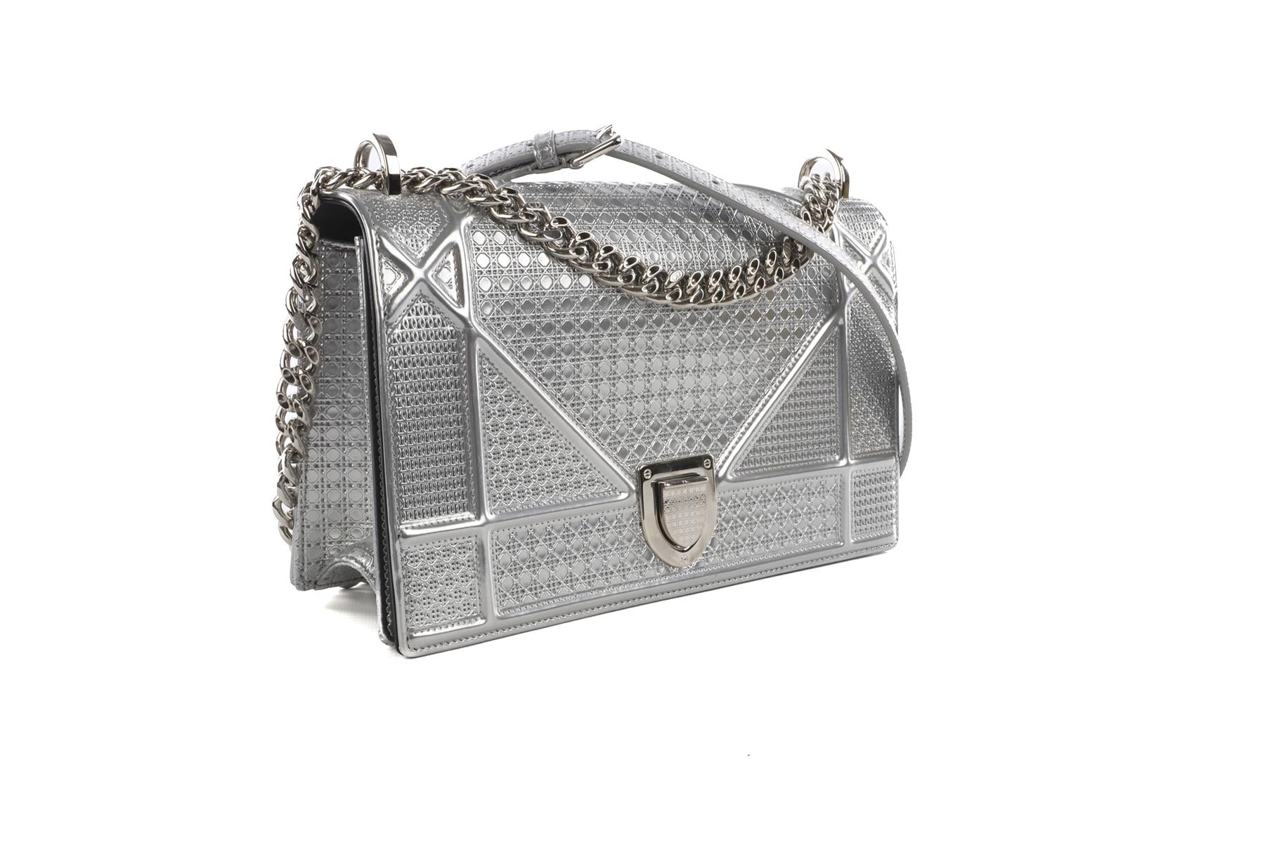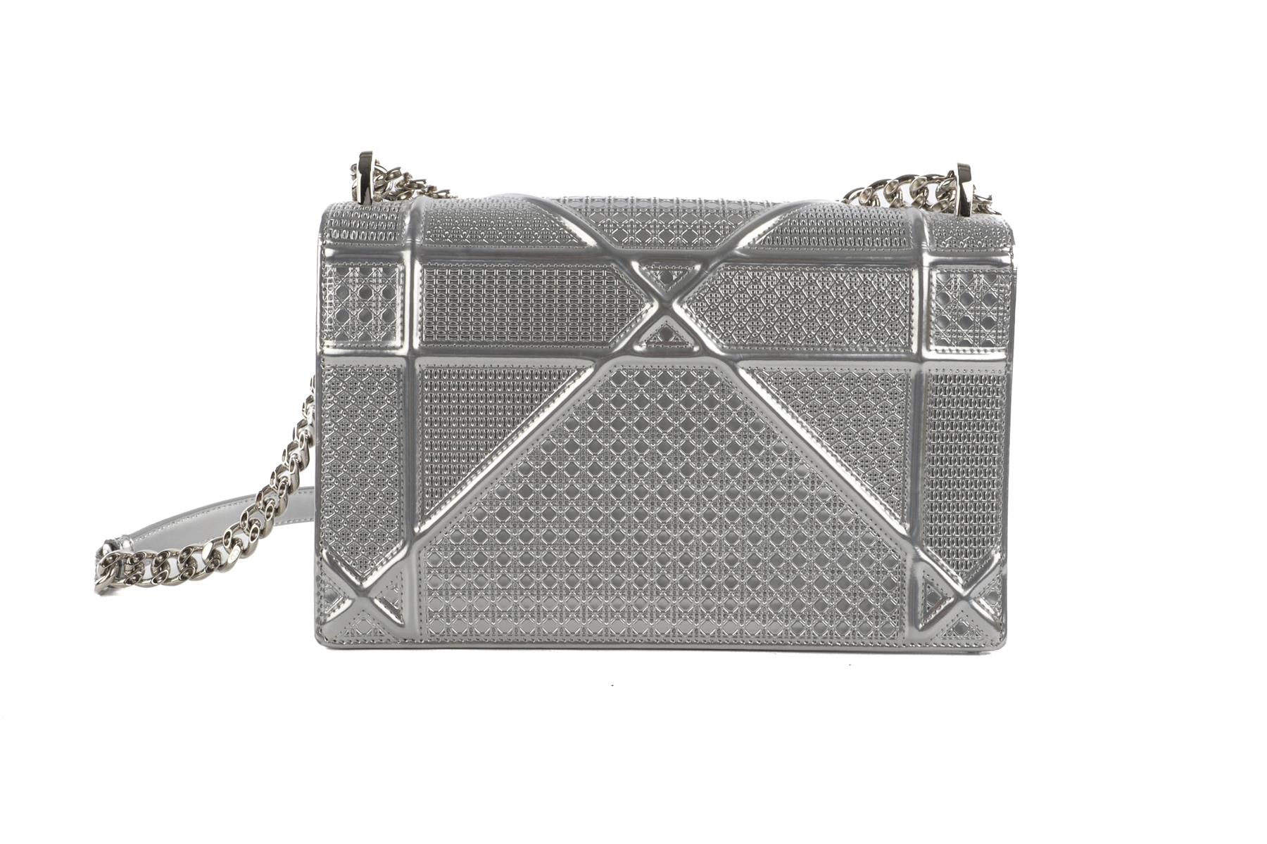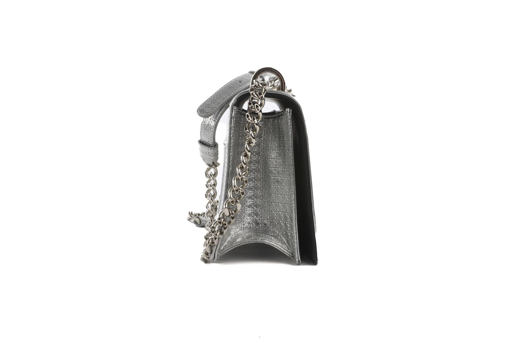 • Christian Dior Silver Diorama Medium Microcannage Leather Shoulder Bag.