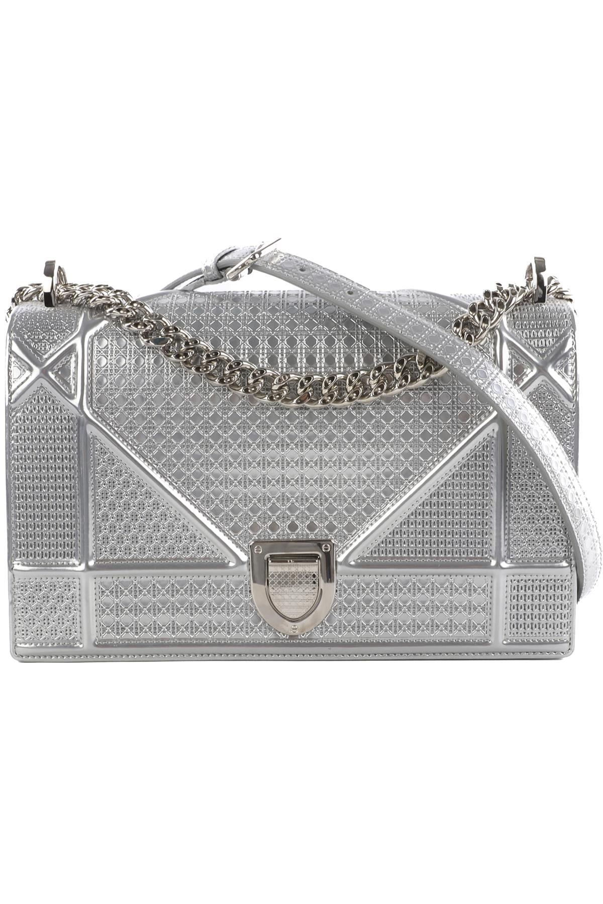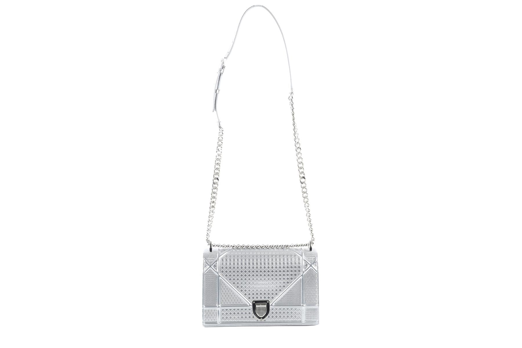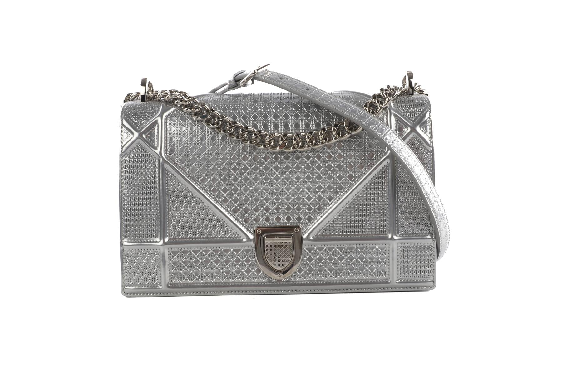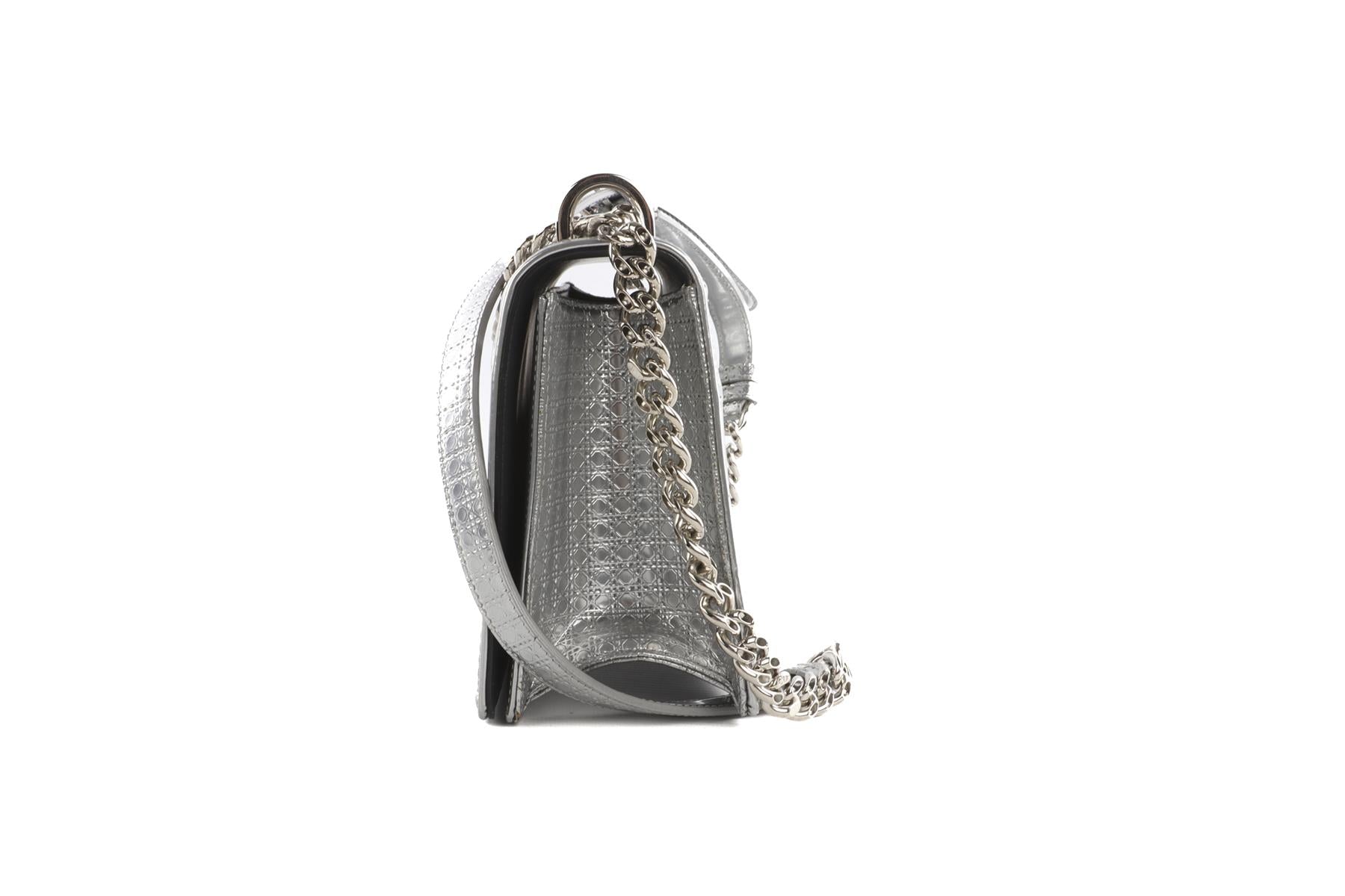 • Christian Dior Silver Diorama Medium Microcannage Leather Shoulder Bag.