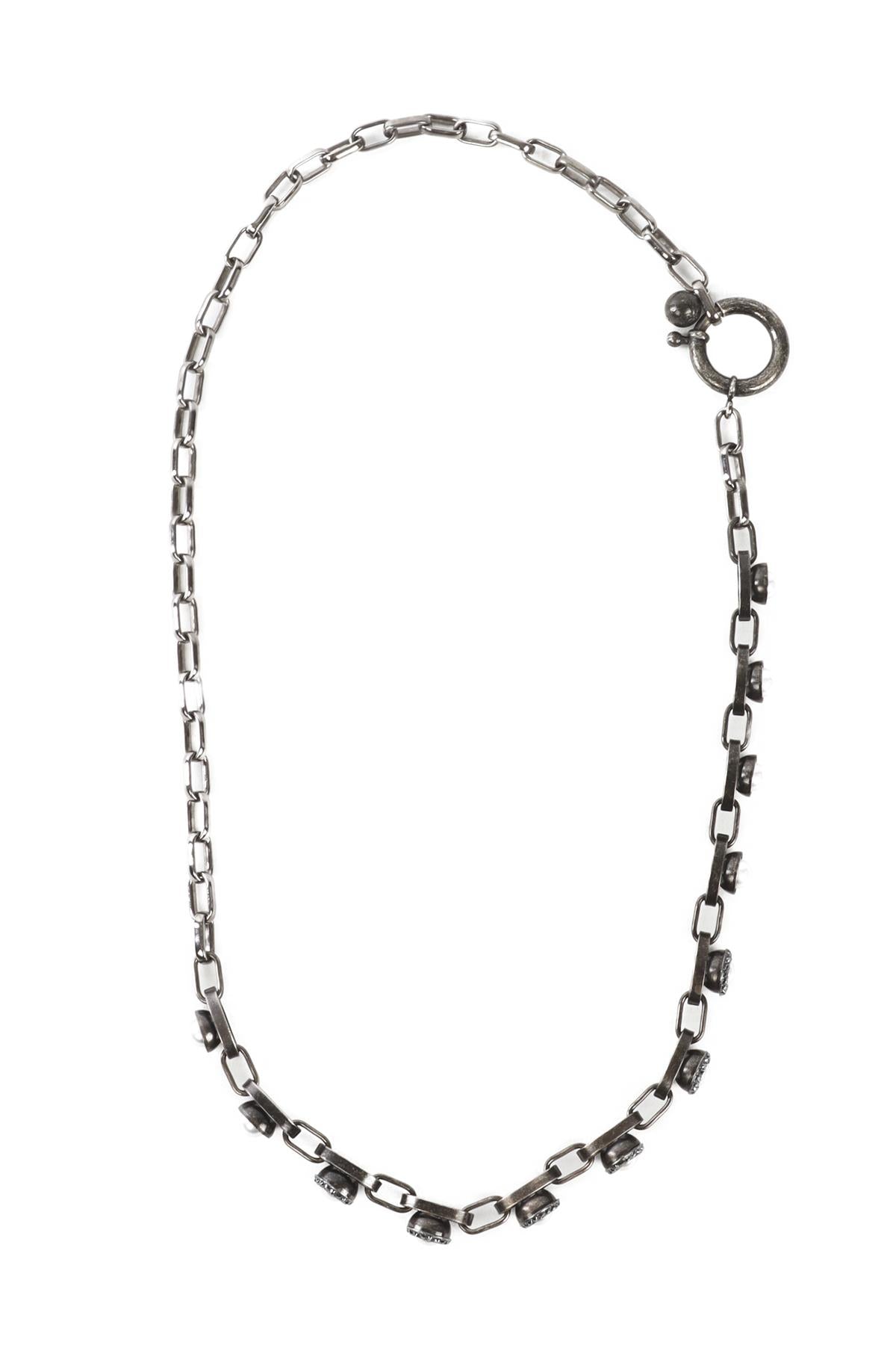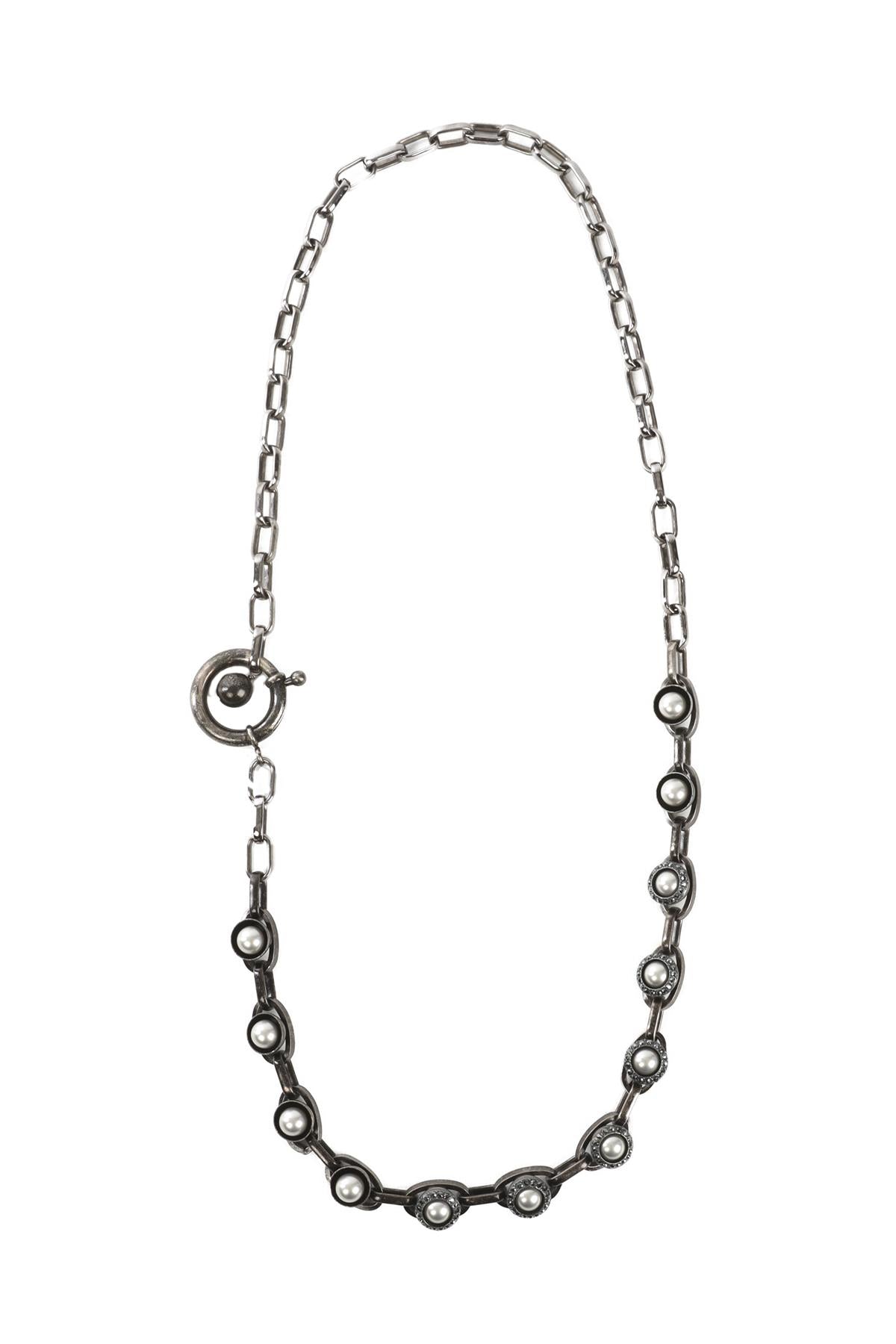 LANVIN GREY CRYSTAL AND CHAIN NECKLACE