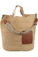 LOEWE + PAULA'S IBIZA BEIGE SLIT LARGE RAFFIA TOTE BAG