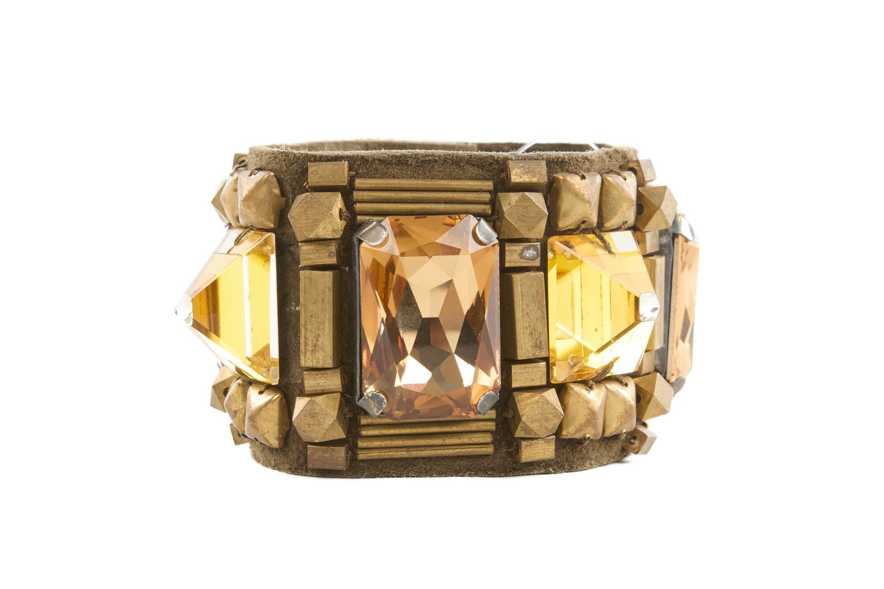 • Matthew Williamson Khaki Crystal And Suede Bracelet.