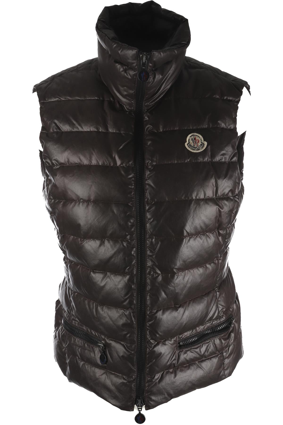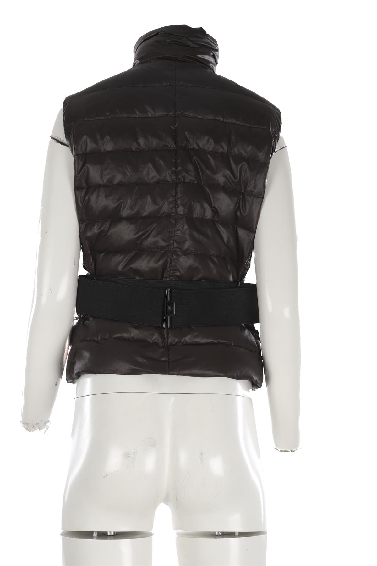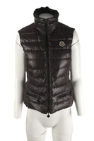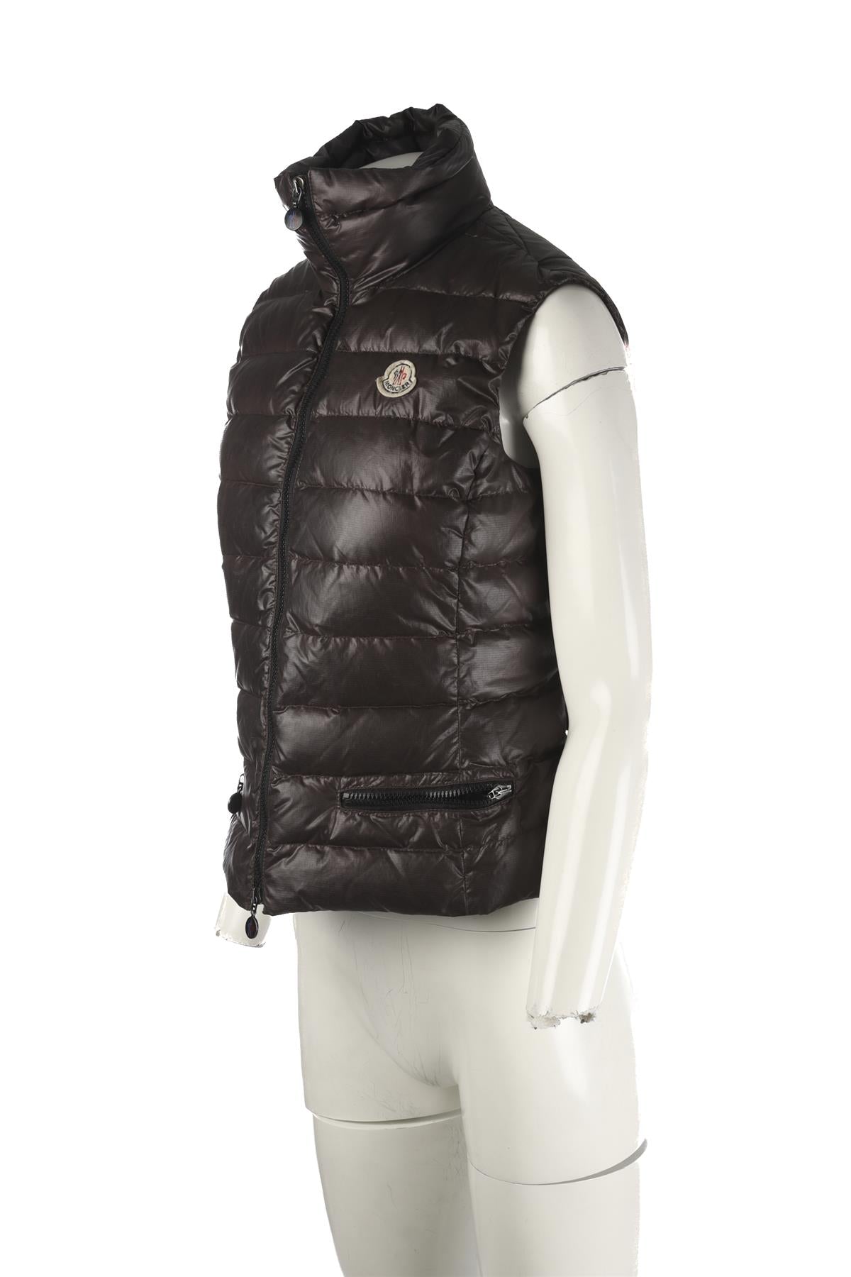 Moncler Grey Padded Down Gilet. Grey. Sleeveless. Mock Neck. Zip fastening - Front. 100% Polyester, 100% Polyamide, 100% Down. 2 (UK 12, US 8, FR 40, IT 44). Bust: 15 in. Waist: 34 in. Hips: 32 in. Length: 38 in.