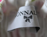 - There is a detachable floral brooch on the front, which fastens to the dress with poppers.