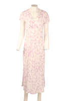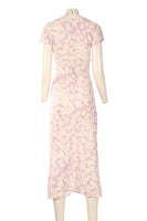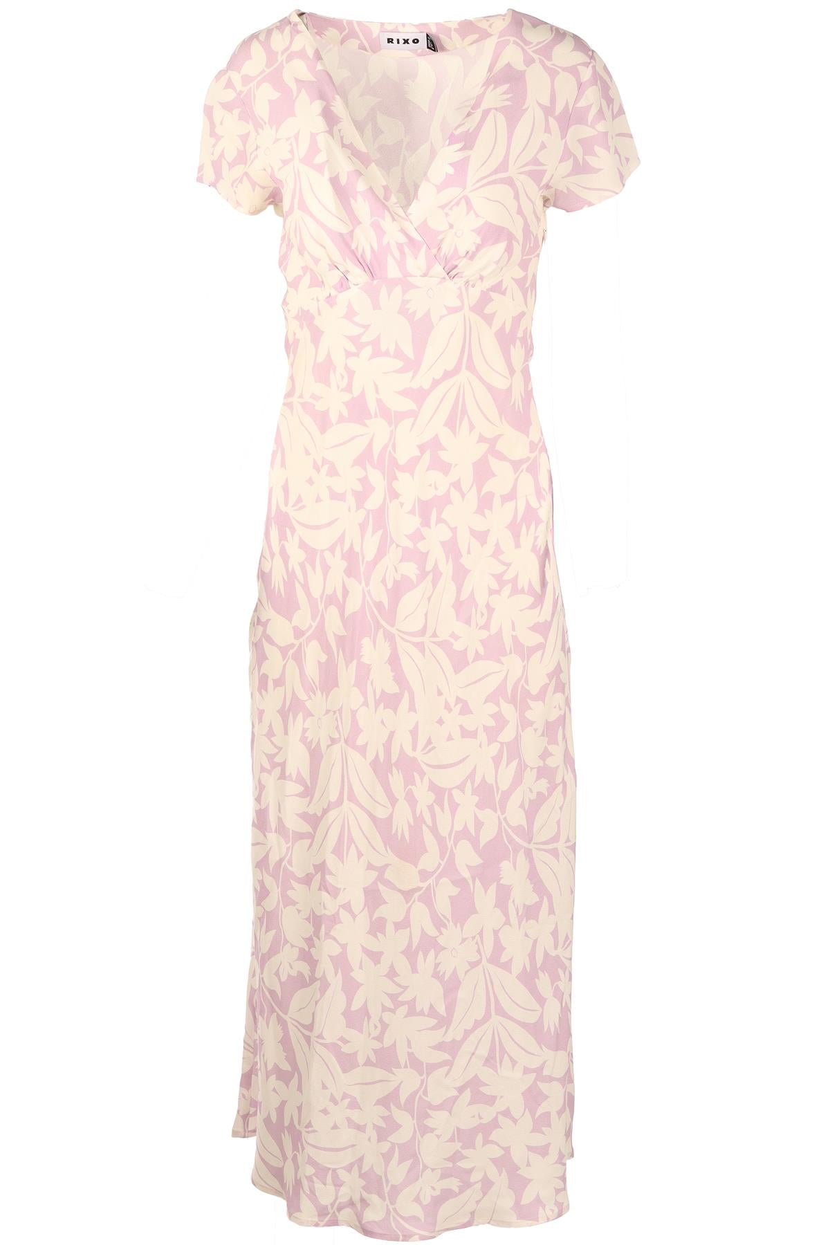 Rixo Purple Crepe Maxi Dress. Purple. Short Sleeve. V-Neck. Zip fastening - Side. 100% Viscose. UK 6 (US 2, FR 34, IT 38). Bust: 32 in. Waist: 28 in. Hips: 42 in. Length: 50 in.