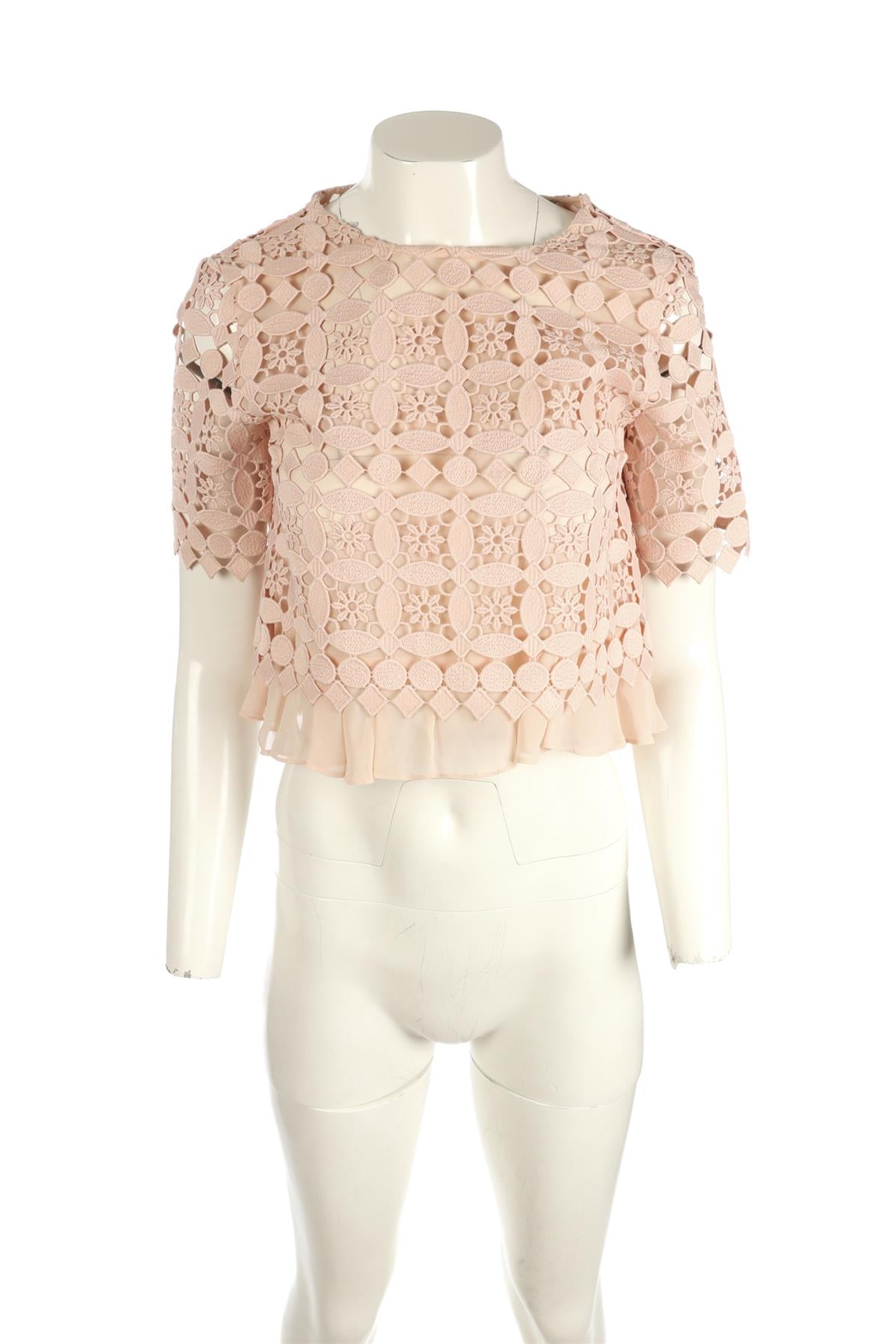 SANDRO PINK CROCHET TOP FR 36 UK 8