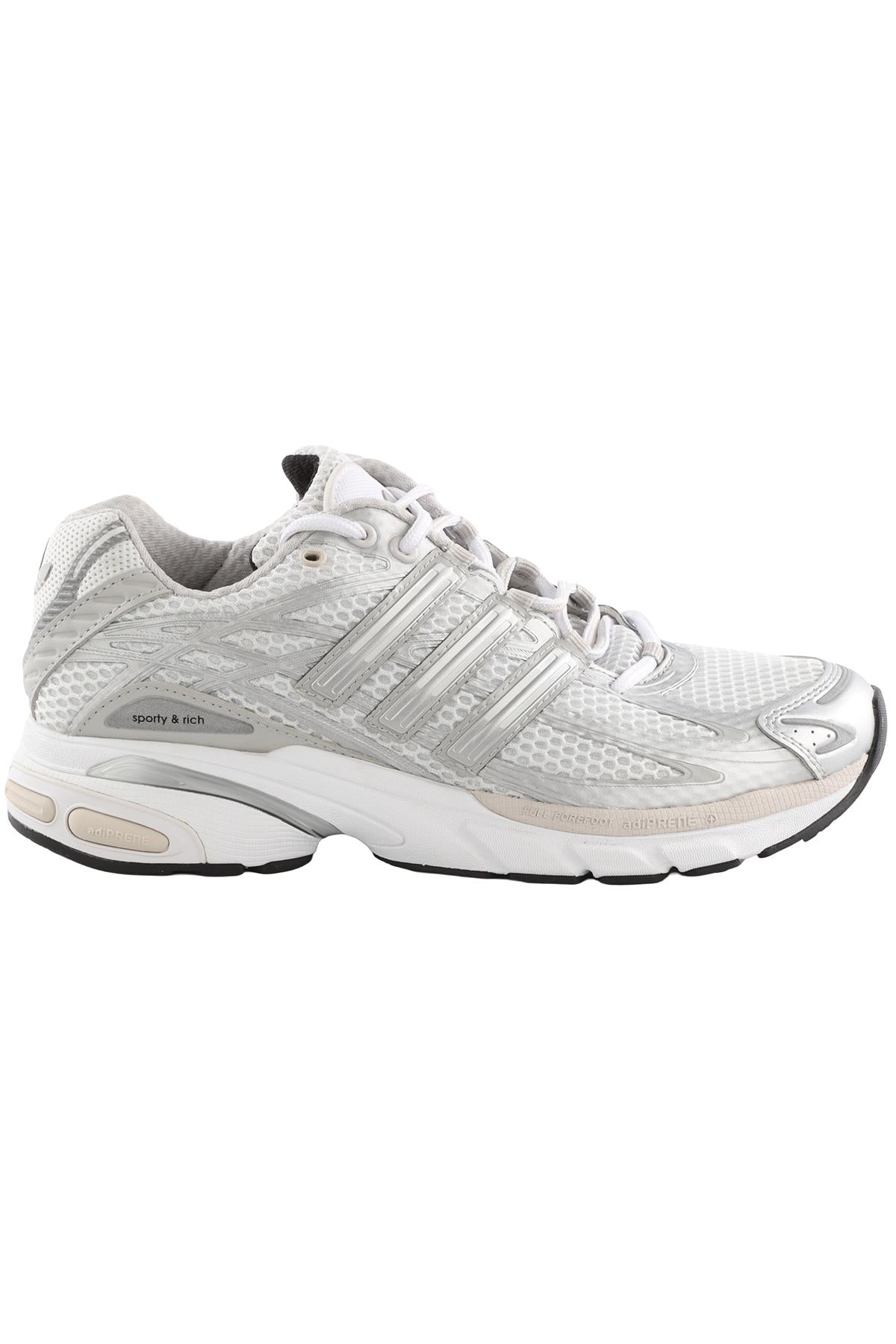Sporty & Rich X Adidas Silver Adistar Grey Sneakers. Grey. Tie fastening - Front. Does not come with - dustbag or box. EU 40 (UK 6.5, US 7). Insole: 10 in. Heel Height: 1.5 in.