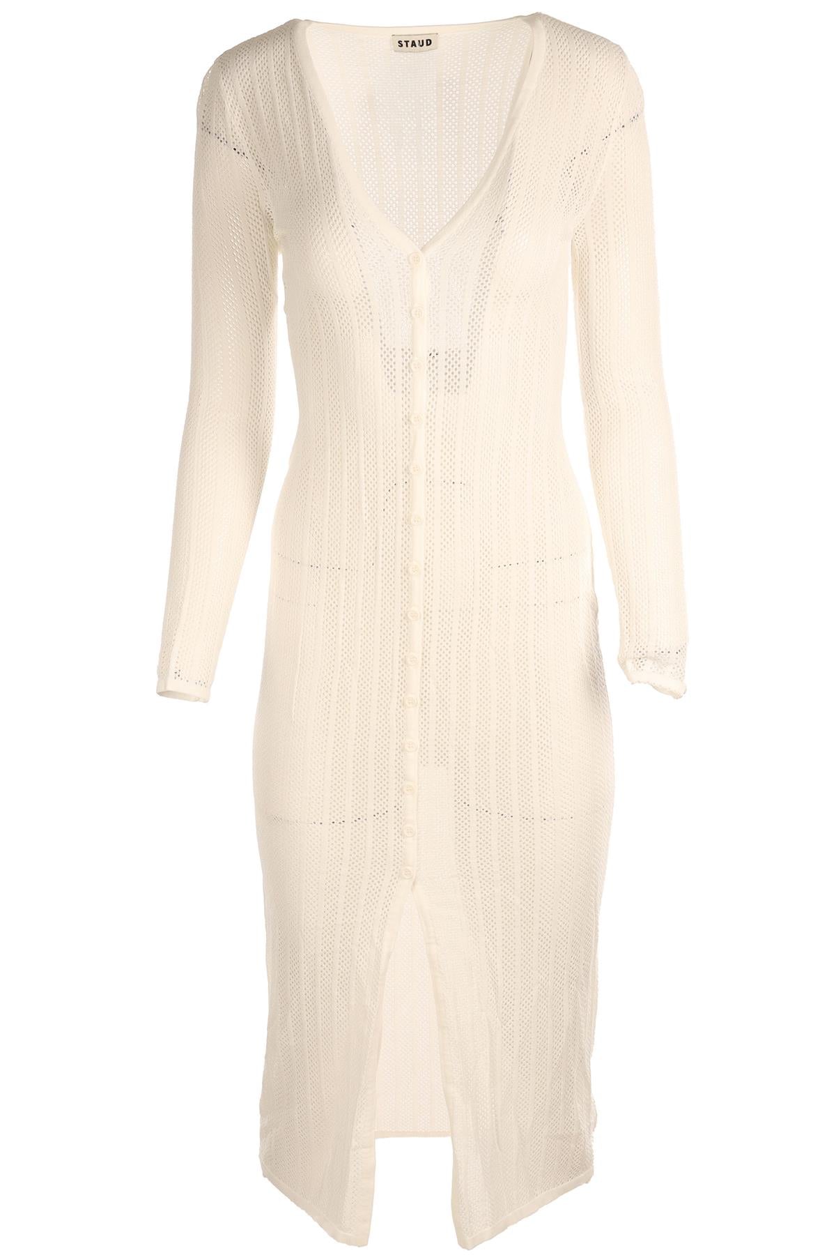STAUD WHITE KNIT MAXI DRESS SMALL