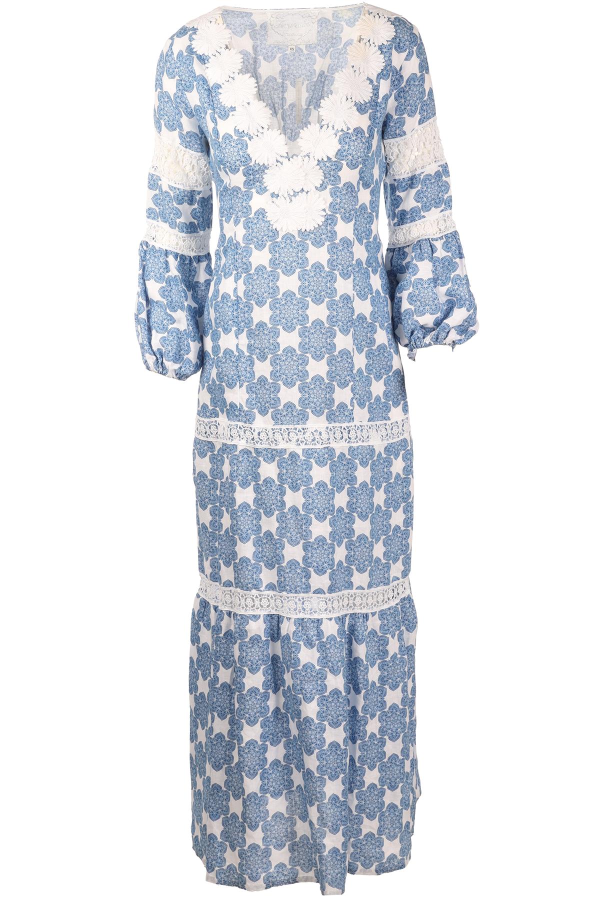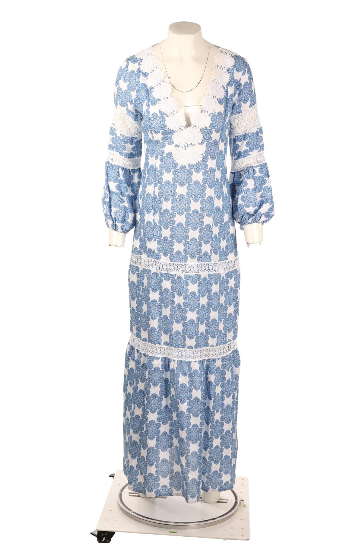 TEMPTATION POSITANO BLUE LINEN MAXI DRESS XSMALL