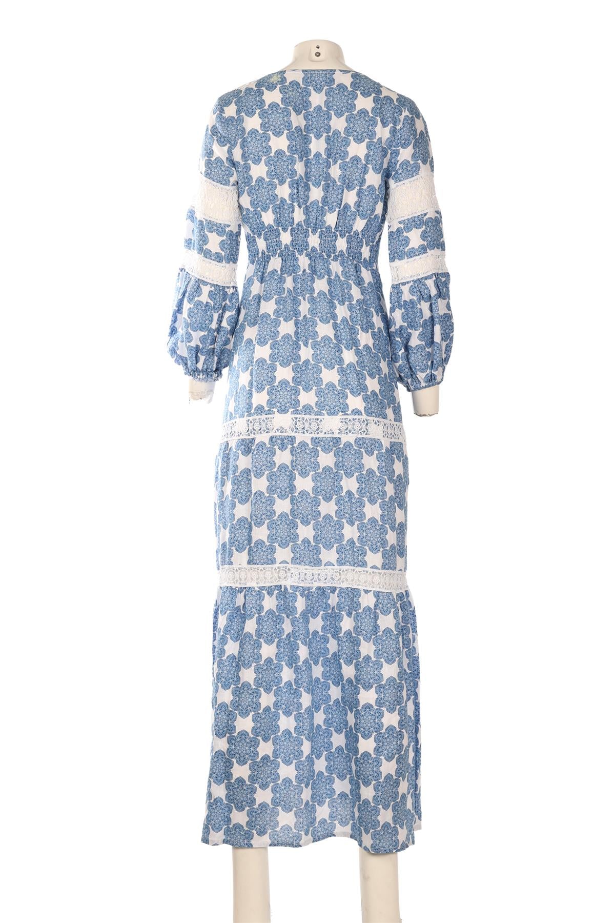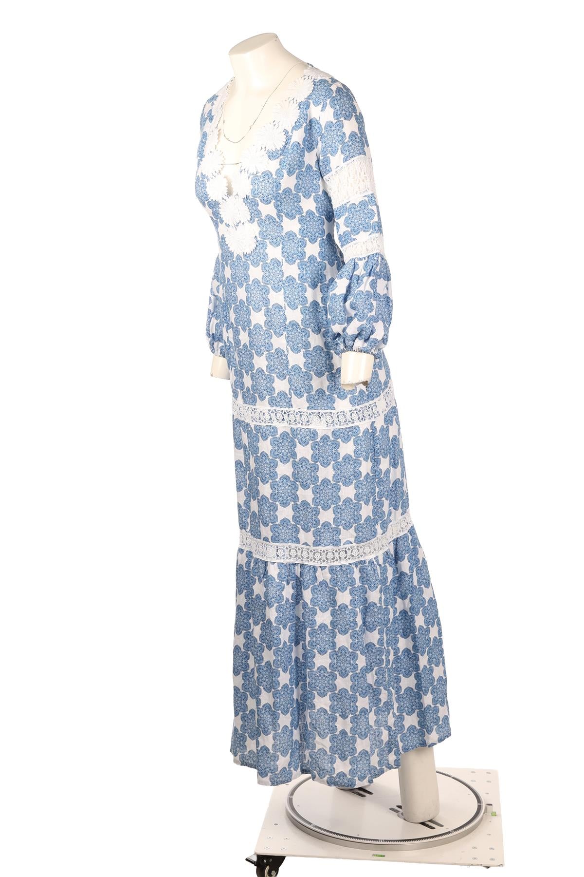 Temptation Positano Blue Linen Maxi Dress. Blue. 3/4 Sleeve. V-Neck. Pull on. No composition label. XSmall (UK 6, US 2, FR 34, IT 38). Bust: 28 in. Waist: 28 in. Hips: 40 in. Length: 56 in.