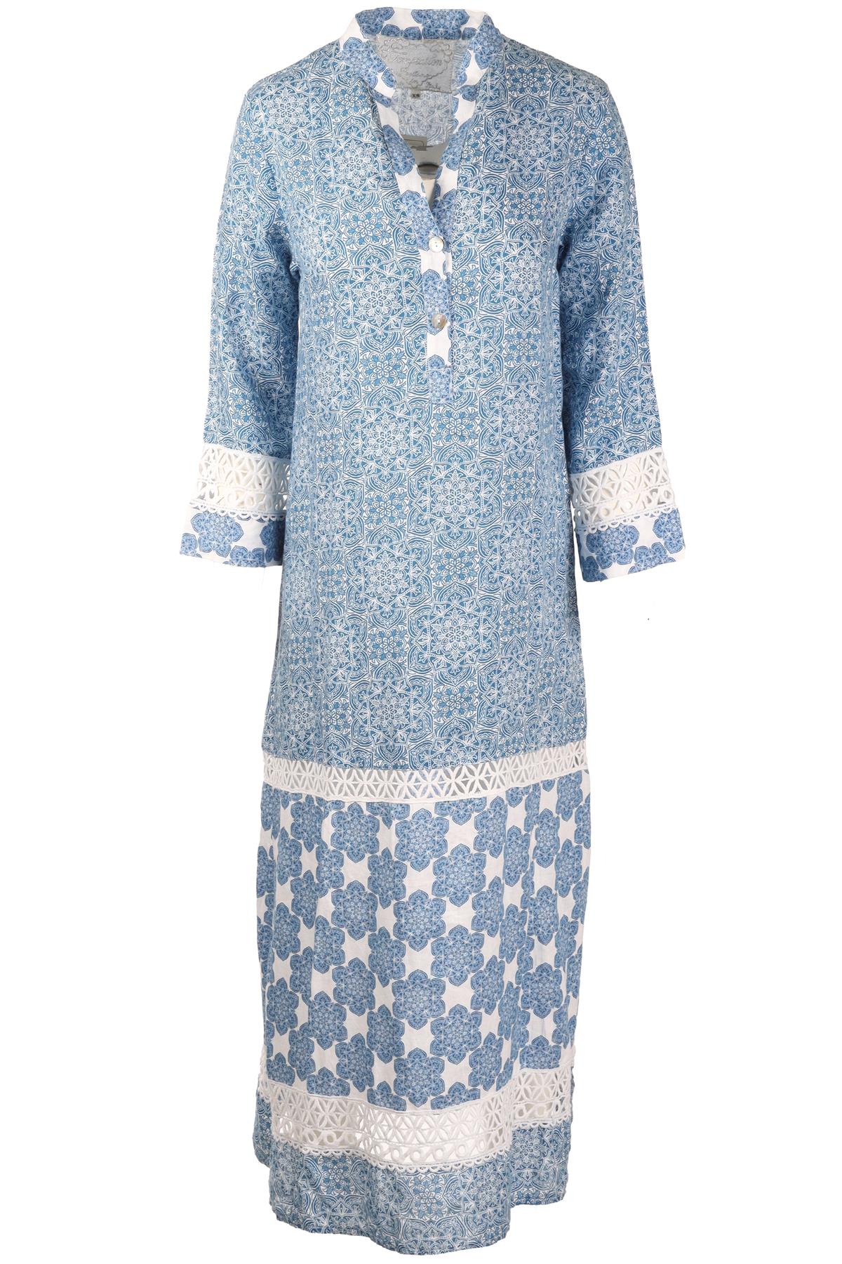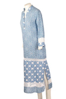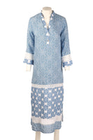 TEMPTATION POSITANO BLUE LINEN MAXI DRESS XSMALL