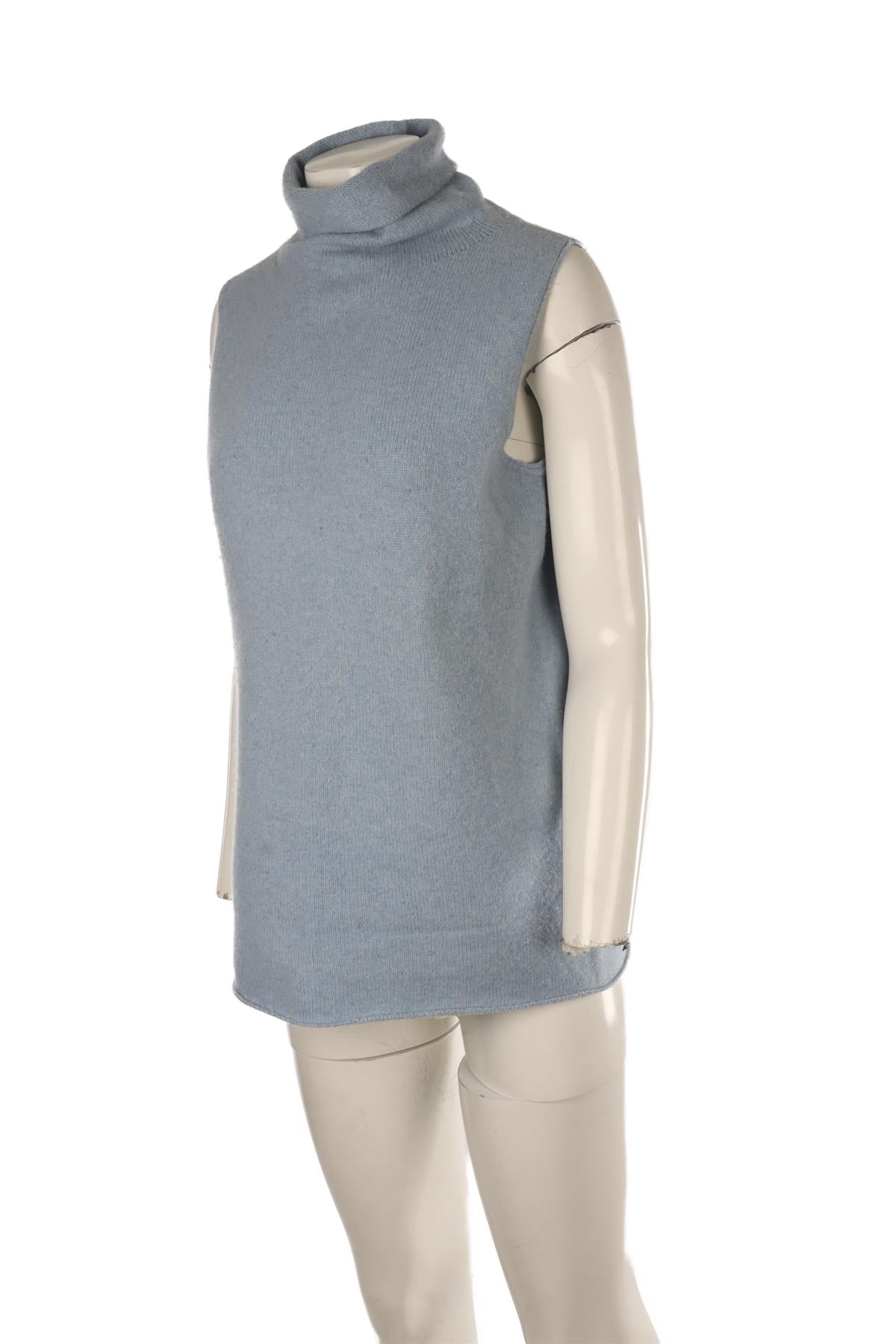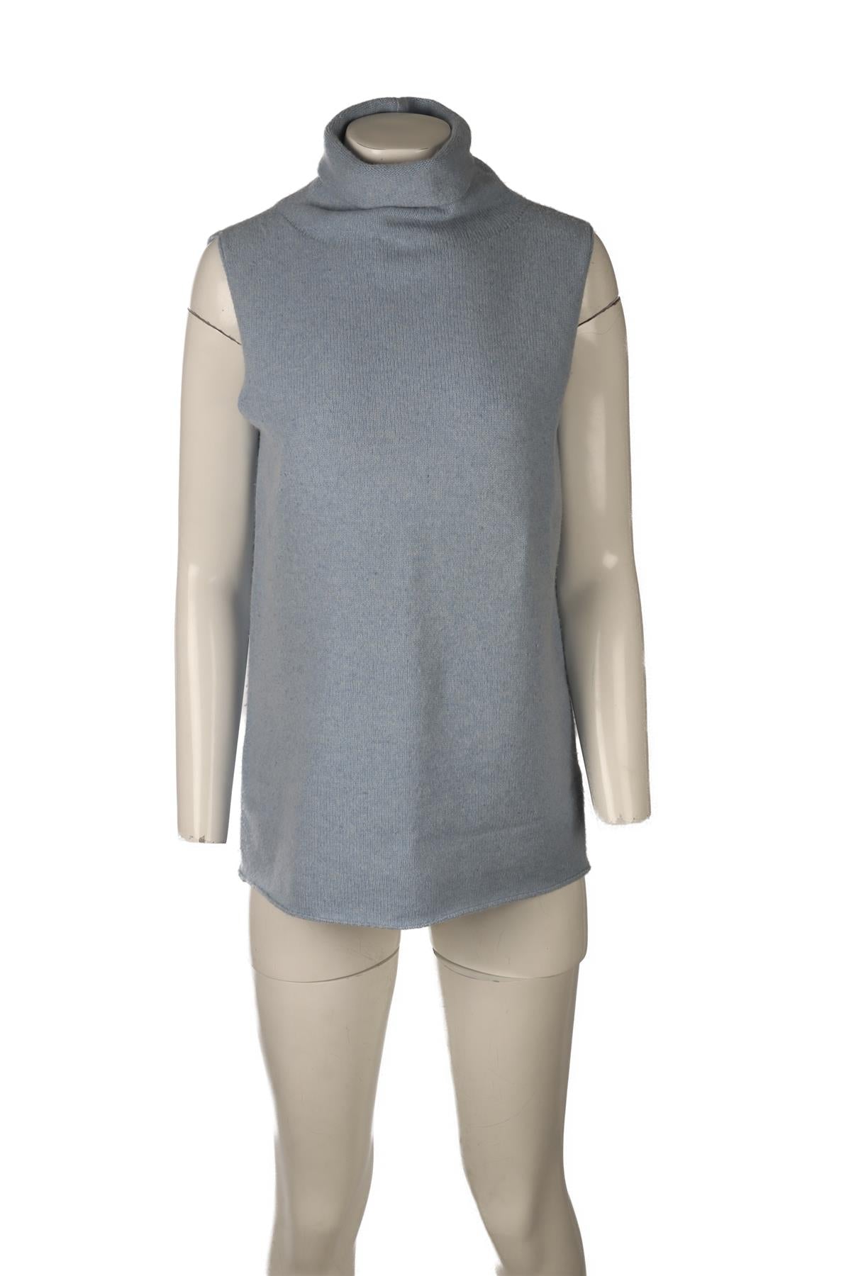 The Row Blue Wool Top. Blue. Sleeveless. Turtleneck. Pull on. 65% Wool, 35% Cashmere. Small (UK 8, US 4, FR 36, IT 40). Bust: 39 in. Waist: 38 in. Hips: 41 in. Length: 33 in.