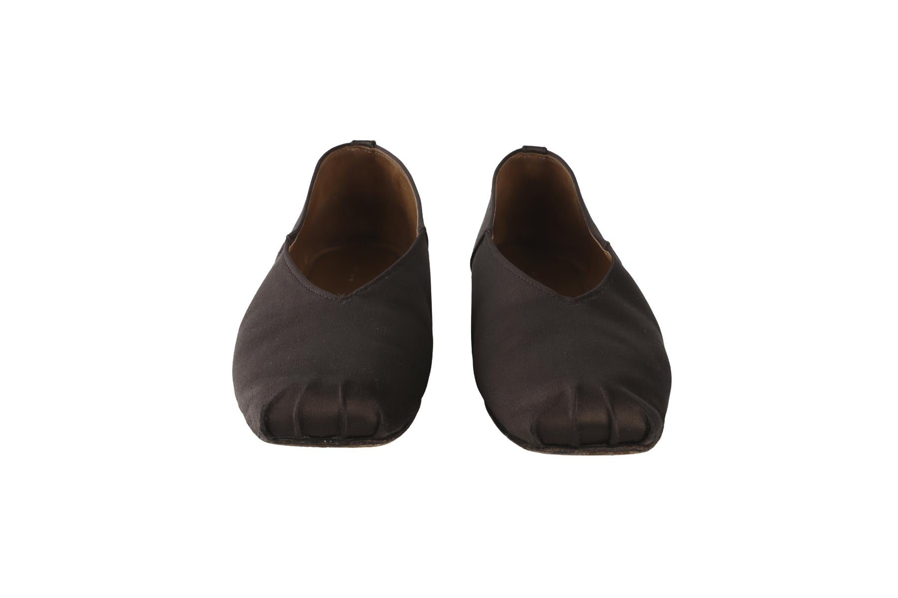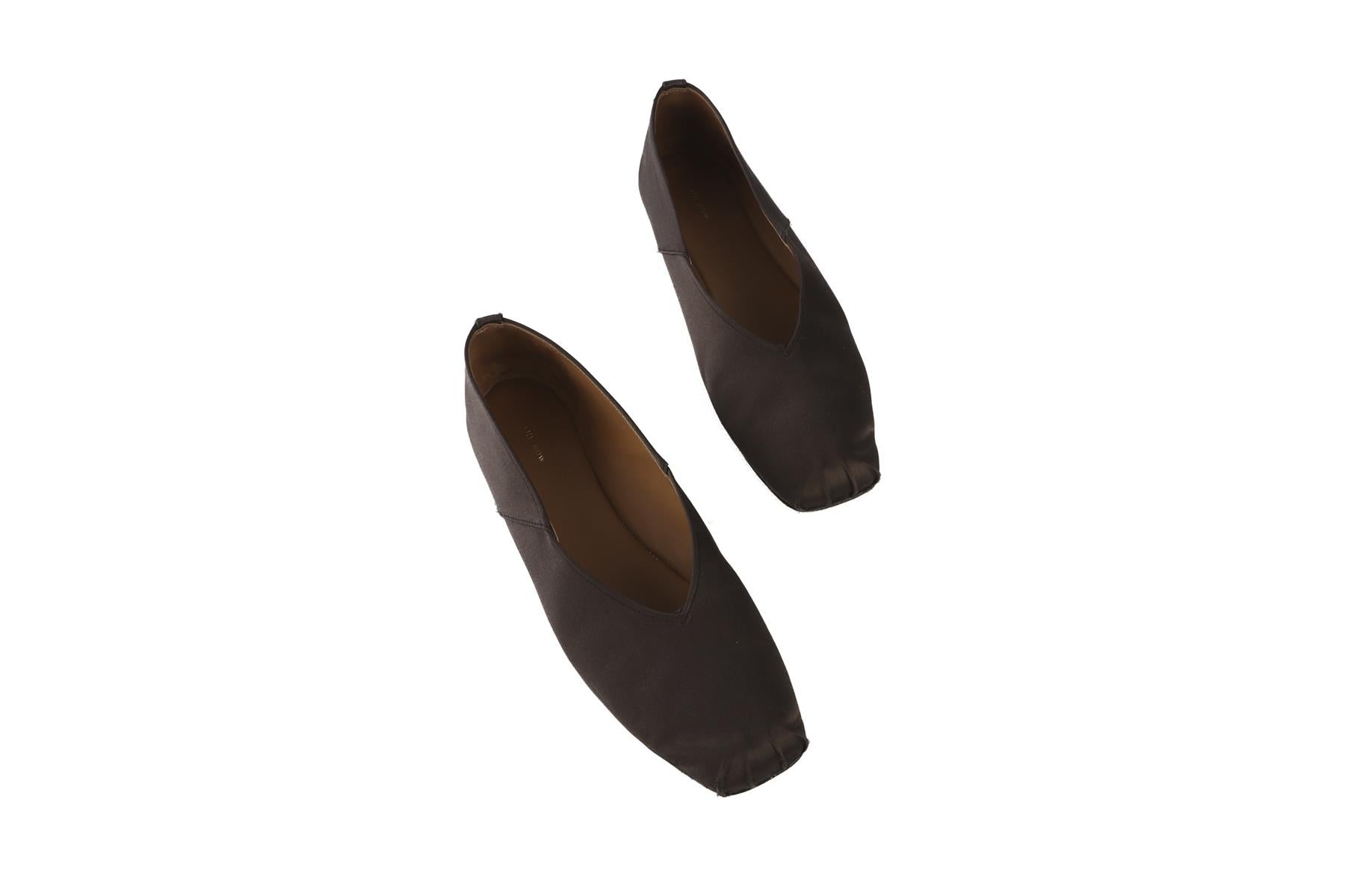 The Row Grey Satin Ballet Flats. Grey. Slips on. Does not come with - dustbag or box. EU 38 (UK 5, US 8). Insole: 9.5 in. Heel Height: 0.2 in.