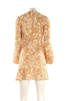 Zimmermann Orange Linen Mini Dress. Orange and cream. Long Sleeve. Crewneck. Zip fastening - Back. 100% Cotton. 1 (UK 10, US 6, FR 38, IT 42). Bust: 32 in. Waist: 28 in. Hips: 46 in. Length: 34 in.
