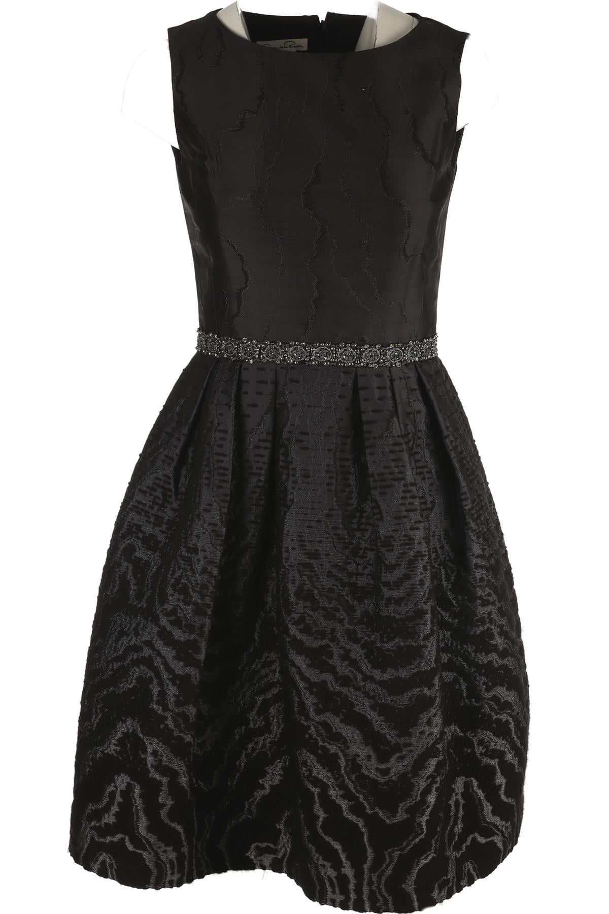 Oscar De La Renta Black Midi Dress. Black. Sleeveless. Crewneck. Zip fastening - Back. No composition label. US 4 (UK 8, FR 36, IT 40). Bust: 32 in. Waist: 28 in. Hips: 46 in. Length: 37 in.
