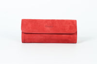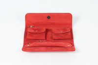 Pomellato Suede Jewellery Travel Pouch. Red. Button fastening - Front. Height: 4 in. Width: 8.5 in.